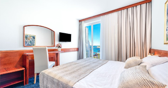 Localizare: hotelul Komodor este situat la poalele dealului Petka, la 50 de metri de plaja, in frumosul golf Lapad, la 10 minute de mers cu autobuzul de centrul vechi al orasului. Frumoasa zona a golfului Lapad va ofera o promenada cu multe magazine, restaurante si baruri.