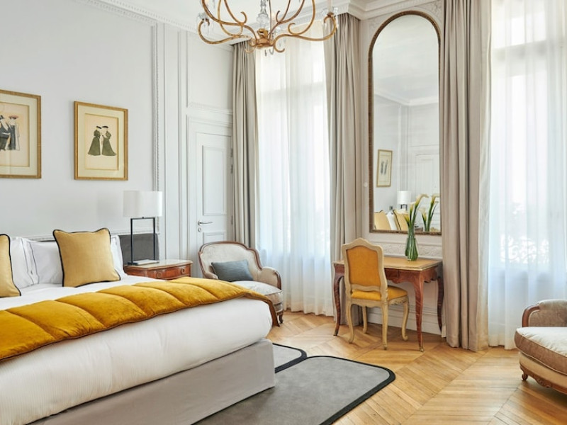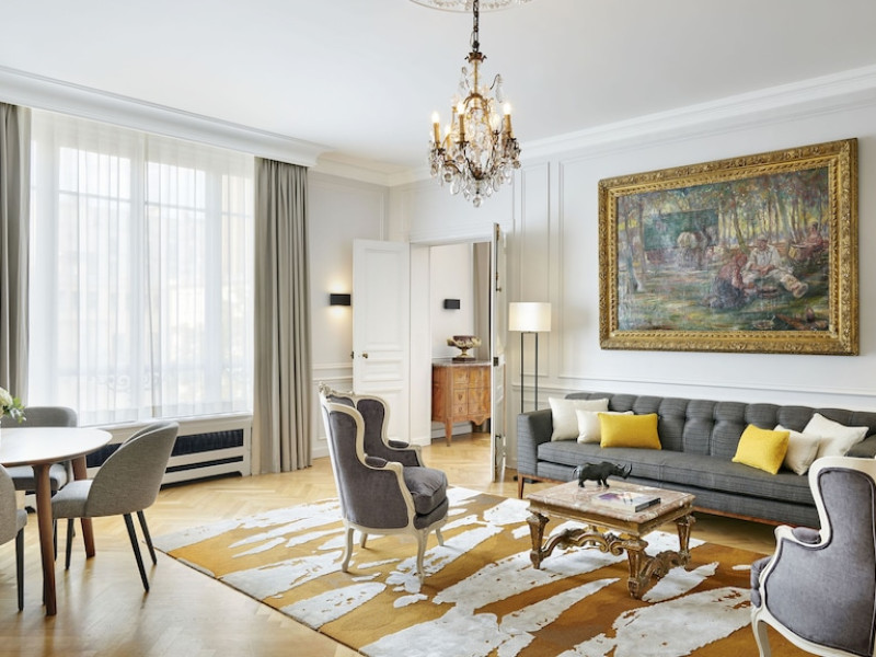 Hotel Lancaster, a luxurious 19th-century private mansion, is situated on Rue de Berri in Paris' 8th arrondissement, steps from the Champs-Élysées and a short walk from the Arc de Triomphe. This boutique hotel offers 46 rooms and 11 suites, each individually furnished with minibars and LCD televisions. Many rooms feature pillowtop beds with down comforters and premium bedding. Private bathrooms include bathtubs or showers, designer toiletries, and hair dryers. The hotel boasts a Zen garden courtyard, a spa offering massages, body treatments, and facials, and Monsieur Restaurant, serving French cuisine with alfresco dining options. Additional amenities include a 24-hour reception, complimentary Wi-Fi, concierge services, a bar/lounge, a business center, room service, laundry service, and parking. A buffet breakfast is available daily for a fee. The hotel is conveniently located near many attractions, including the Rue du Faubourg Saint-Honoré, Place de l'Etoile, Place de la Concorde, and is within easy reach of the Eiffel Tower, the Louvre Museum, and other major landmarks via public transport. Orly Airport is approximately 25 km away, and Charles de Gaulle Airport is approximately 33 km away. George V Metro Station is a 3-minute walk away. The Hotel Lancaster Paris Champs Elysees is a Business, Child Friendly, City hotel, Tourist hotel. The nightlife/restaurants are easily accessible by taxi or bus from the hotel.
