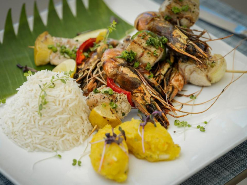 Oaspeții se pot relaxa langă piscină sau pe plajă. Restaurantul de pe plajă, La Gigolette, oferă mic dejun internațional, pranz și fructe de mare à la carte pentru cină. La Feuille d'Or, din clădirea principală, servește o varietate de opțiuni pentru cină.