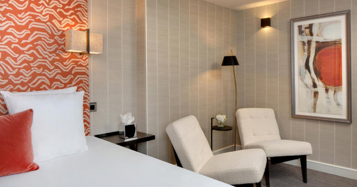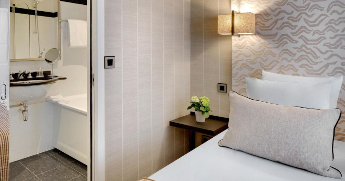 Located between the Latin Quarter and Saint-Germain-des-Près, Hotel Le Senat is a short walk from the Luxembourg Gardens. It offers a bar, a reading room, and a breakfast buffet. Some rooms have a balcony. Amenities include a flat-screen TV with satellite channels and free Wi-Fi. Services such as a 24-hour desk, concierge, express check-in/out, luggage storage, room service, laundry service, and tours assistance are available. The hotel is serviced by a lift and is entirely non-smoking. The Hotel Le Senat is a Tourist hotel. The nightlife/restaurants are easily accessible by taxi or bus from the hotel.