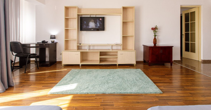 Apartamentul este un ansamblu compus din salon, dormitor cu pat matrimonial/twin, bucatarie complet utilata, baie si balcon. Acest tip de camera ofera un spatiu versatil: dormitorul este separat complet de salon prin intermediul unei usi iar bucataria dispune de zona pentru servirea mesei. Apartamentul are suprafata de 76 mp si este destinat cazarii a 3 persoane. Dispuneti de toate facilitatile necesare confortului dumneavoastra: baie cu cabina de dus, bucatarie utilata cu frigider, plita electrica, hota, ustenstile pentru gatit, balcon, LCD TV in fiecare camera, DVD Player, aer conditionat, telefon, cablu TV. Veti fi permanent in contact cu cei dragi gratie accesului gratuit la internet wireless. 76 m2/ 3 adulti.