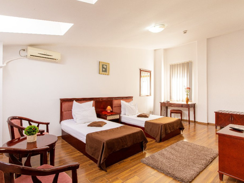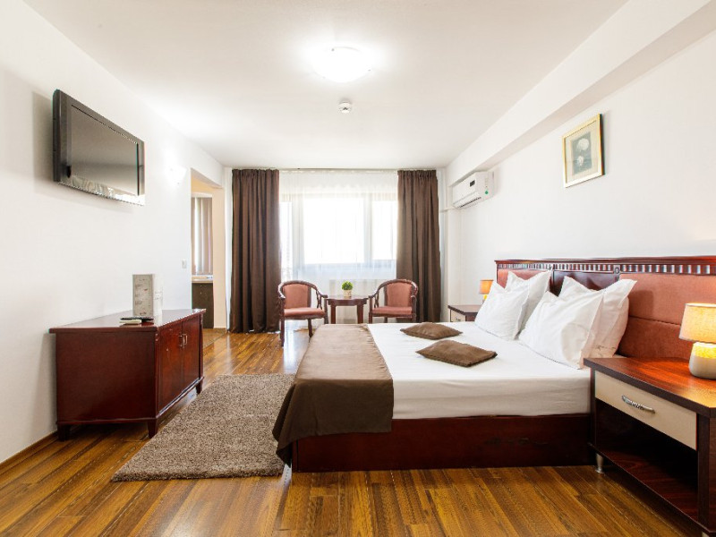 Camerele sunt concepute cu scopul de a asigura confortul pentru odihna si spatiul necesar desfasurarii activitatii dumneavoastra, in conditii excelente.