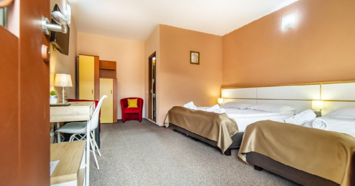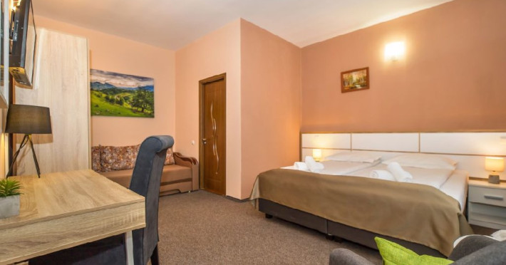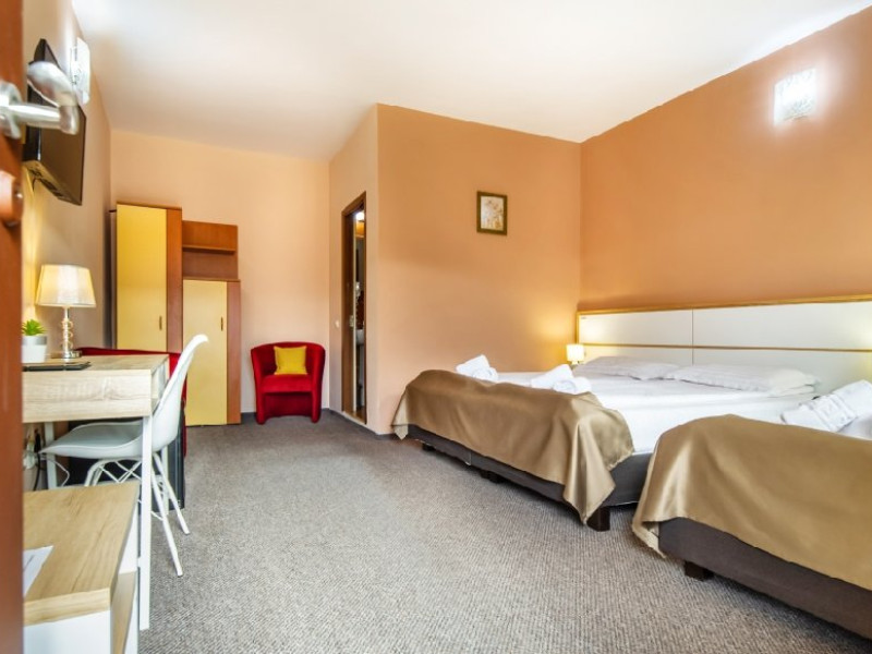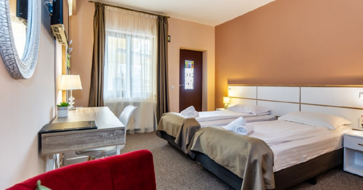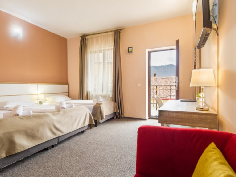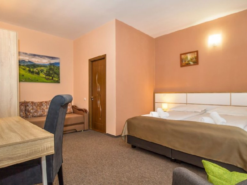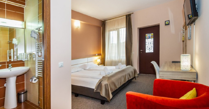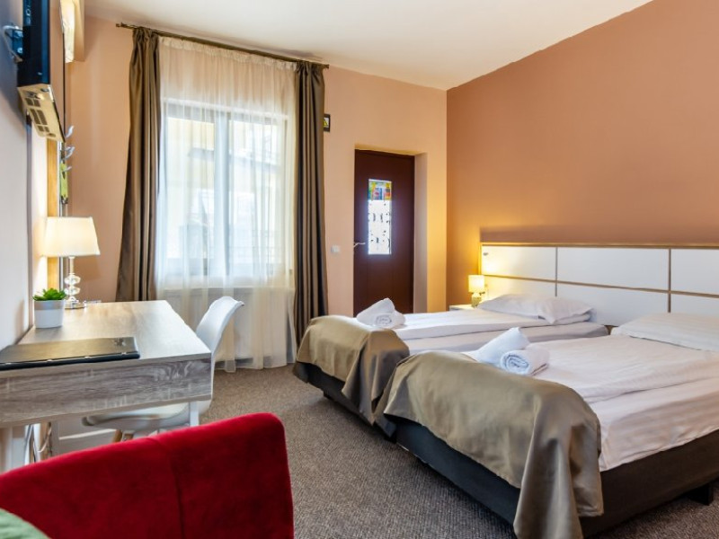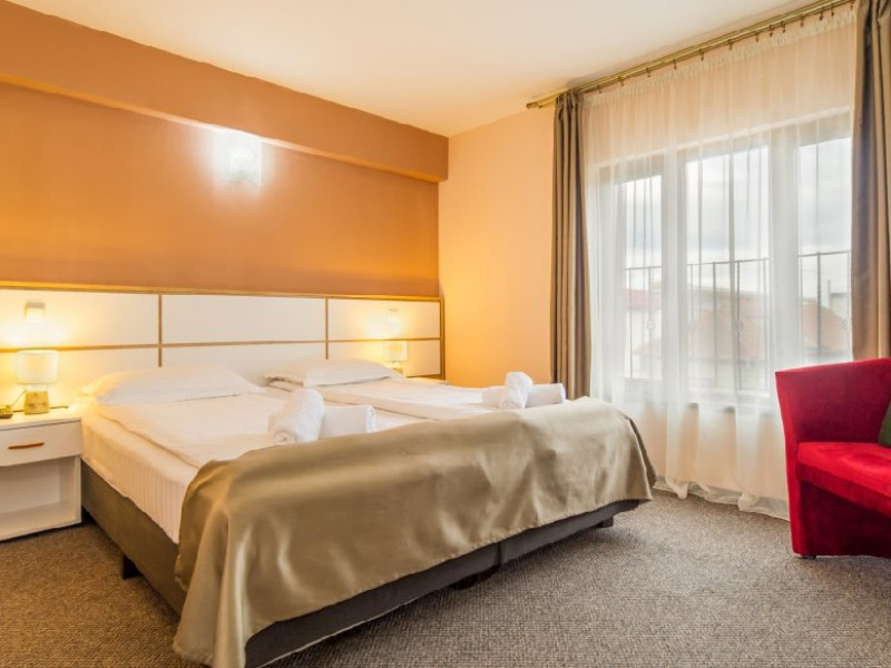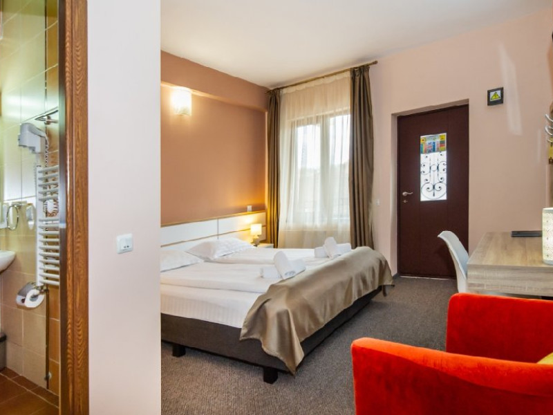 DESCRIERE CAMERE Hotelul Long Street 3* va asteapta cu 14 camera duble, 3 triple, 3 family si 3 apartamente. - Camera standard cu pat matrimonial 180/200 - capacitate max 2 pers. - Camera Dubla Superioara cu pat matrimonial 180/200- capacitate max 2 pers. - Camera Dubla Superioara Twin cu 2 paturi 90/200- capacitate max 2 pers. Ideale pentru una sau doua persoane, majoritatea camerelor duble de la Hotelul Long Street au o priveliste de vis catre Tampa. Toate camerele au geamuri duble, asigurand un mediu linistit si relaxant. - Camera Tripla- pat matrimonial 180/200 si pat single 90/200- capacitate max 3 pers. Ideale pentru o familie de 3 persoane, majoritatea camerelor triple de la Hotelul Long Street au o priveliste de vis catre Tampa. Toate camerele au geamuri duble, asigurand un mediu linistit si relaxant. Camerele triple au un pat dublu (180 cm) si un pat de 1 persoana (90 cm), baie proprie cu cabina de dus. - Apartament cu 2 camere- cu pat matrimonial 180/200 si canapea extensibila cu saltea matrimoniala 160/200 - capacitate max 4 pers. Ideale pentru o familie, majoritatea apartamentelor de la Hotelul Long Street au o priveliste de vis catre Tampa. Toate camerele au geamuri duble, asigurand un mediu linistit si relaxant. Apartamentele au 2 camere:- un pat dublu (180 cm) sau doua paturi de 1 persoana (90 cm), - o canapea extensibila, - baie proprie cu cabina de dus. - Family 4- cu pat matrimonial 180/200 si canapea extensibila cu saltea matrimoniala 160/200 - capacitate max 4 pers. - Family 5- cu pat matrimonial 180/200, pat single 90/200 si canapea extensibila cu saltea matrimoniala 160/200 - capacitate max 5 pers. Ideale pentru o familie de 4 sau 5 persoane, majoritatea camerelor de tip Family de la Hotelul Long Street au o priveliste de vis catre Tampa. Toate camerele au geamuri duble, asigurand un mediu linistit si relaxant. Camerele Family au un pat dublu (180 cm), un pat de 1 persoana (90 cm) si o canapea extensibila, baie proprie cu cabina de dus.