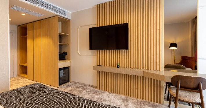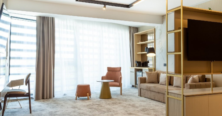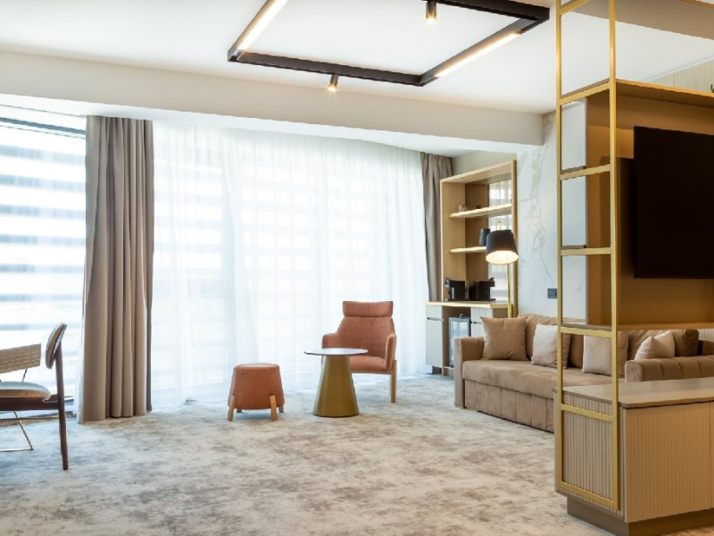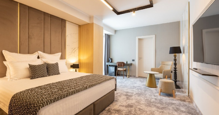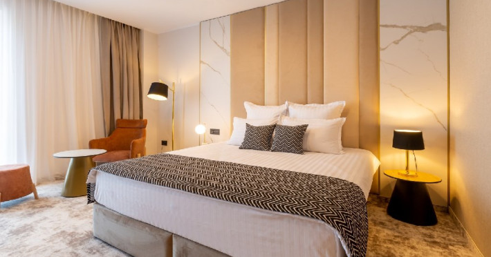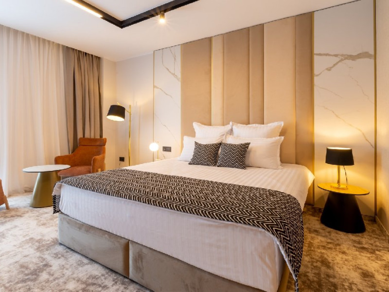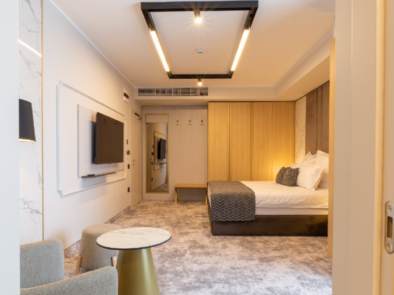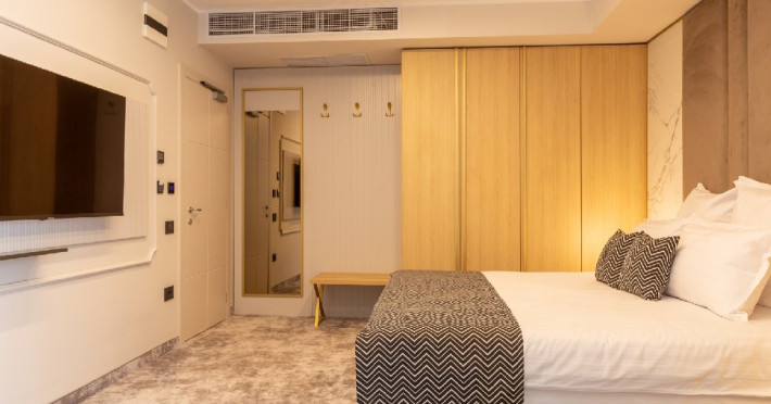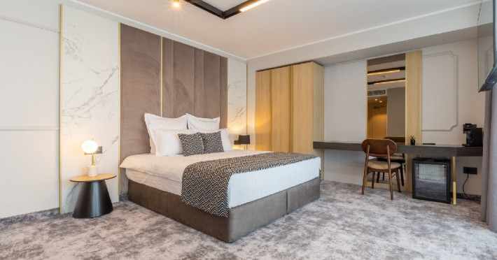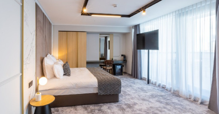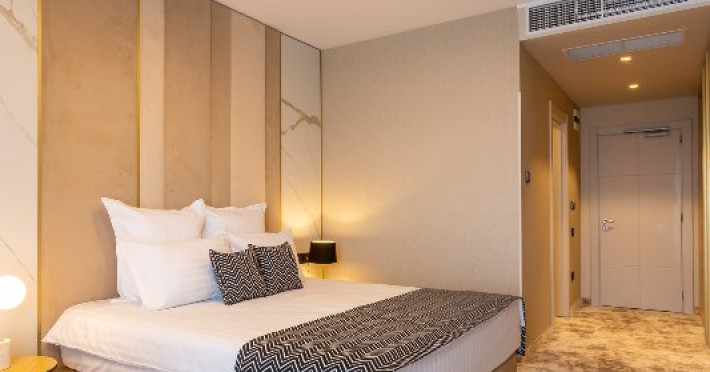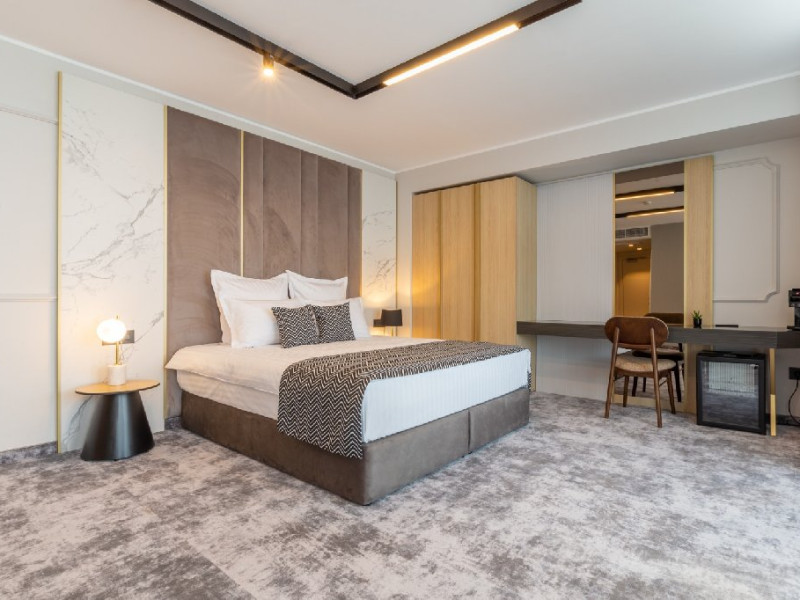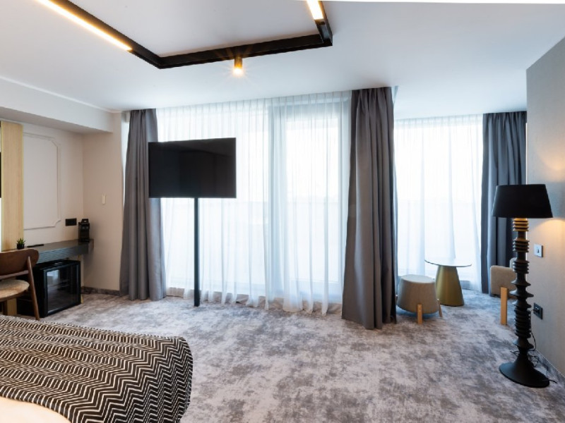 DESCRIERE CAMERE Cele 32 de camere, spatioase si cu facilitati moderne, precum Smart TV, espressor cafea cu capsule, seif, uscator de par, sistem centralizat de climatizare va ofera o experienta unica fie ca este vorba de o vacanta sau o calatorie de afaceri. Camerele de la etajul 4 dispun de balcoane, oferind o vedere panoramica asupra zonei peninsulare a Constantei, a centrului istoric si a Marii Negre.