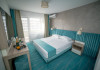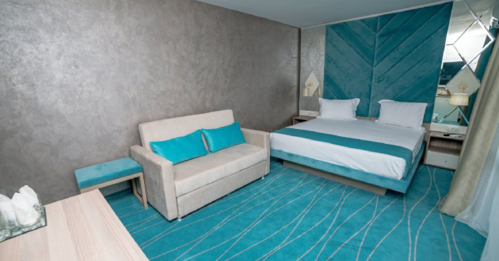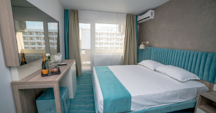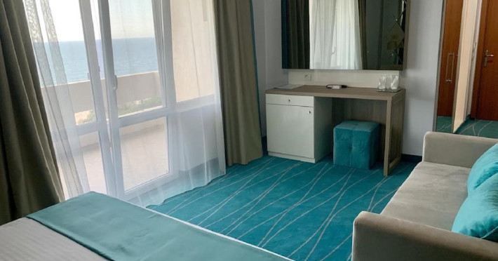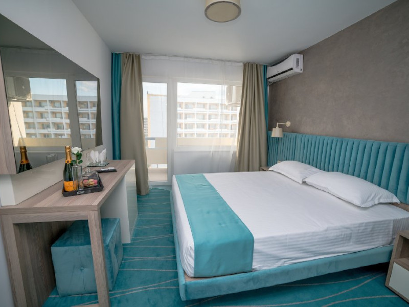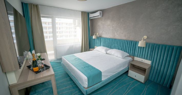 Camera DeLux: Aceasta camera ofera un confort sporit si este dotata cu facilitati de lux, cum ar fi un pat king-size extrem de confortabil, aer conditionat, minibar, televizor LCD, dressing si baie privata cu dus, uscator de par si articole de toaleta. De asemenea, balconul privat al camerei de lux ofera o priveliste panoramica de neuitat asupra Marii Negre pe partea de nord si este locul ideal pentru a savura o cafea dimineata sau a admira apusul de soare in timp ce va relaxati in liniste.