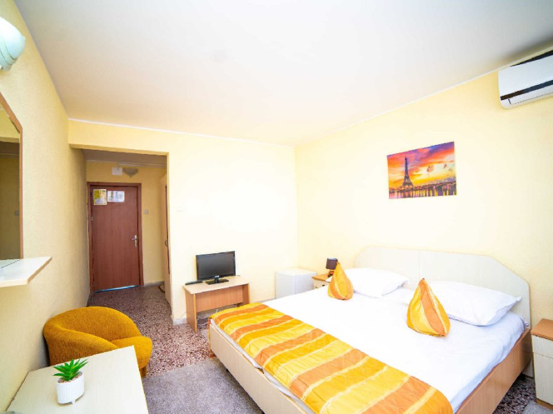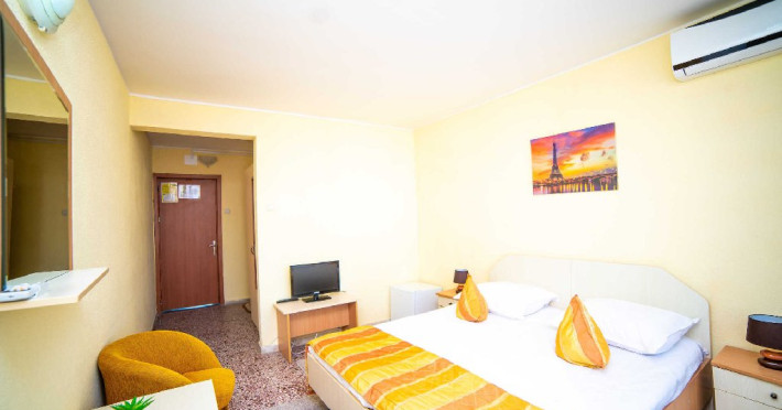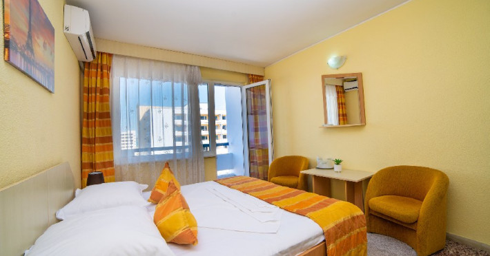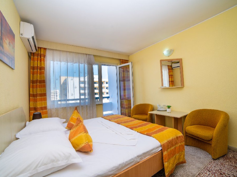 DESCRIERE CAMERE Camera Standard Este dotata cu un pat matrimonial sau doua paturi separate, aer conditionat, televizor LCD, minibar, dressing si baie privata cu dus, uscator de par si articole de toaleta. Balconul camerei duble standard ofera o priveliste laterala la mare. Camera dubla standard este un spatiu confortabil si practic pentru cei care doresc sa se bucure de facilitatile hotelului si de frumusetea statiunii Jupiter la un pret accesibil.