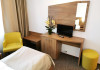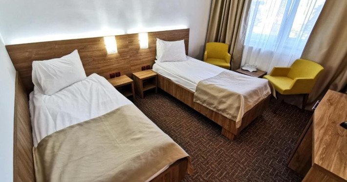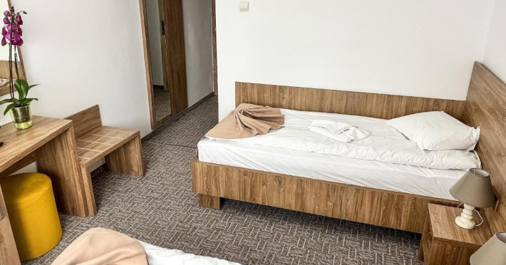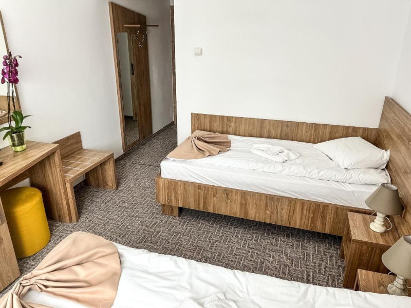 DESCRIERE CAMERE: Camerele duble de 2* sunt dotate cu pat matrimonial sau twin, mocheta, tv, baie cu cabina de dus, scaune si masuta de cafea, telefon, balcon. Camerele duble de 3* sunt dotate cu pat matrimonial sau twin, mobilier nou, mocheta, tv, baie cu cabina de dus, scaune si masuta de cafea, telefon, balcon.