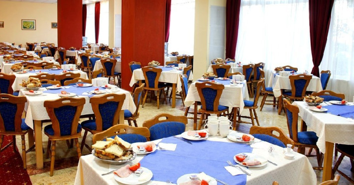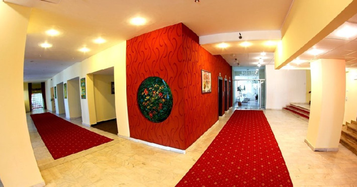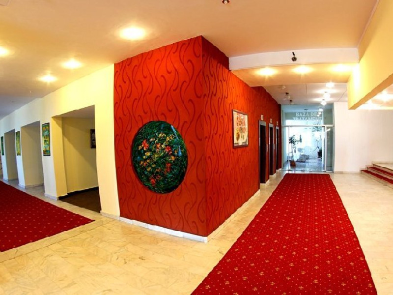 DESCRIERE UNITATE DE CAZARE: Hotelul dispune de 244 camere duble si 4 apartamente, are 8 eraje si 3 lifturi. Tarifele aferente pachetelor de tratament sunt valabile doar pentru turistii asigurati, care au obligatia de a prezenta la receptie urmatoarele documente: biletul de trimitere* pentru servicii medicale in sistemul asigurarilor sociale de sanatate romanesc, cu precizarea numarului de contract cu C.A.S. cardul de sanatate - activ * In baza biletului de trimitere se acorda: 1 consultatie medicala si 2 proceduri de tratament/zi, a treia procedura fiind inclusa in valoarea pachetului, in functie de tipul de pachet ales. Pentru turistii care NU prezinta biletul de trimitere, se va acorda o singura procedura de tratament/zi (exceptie sambata, duminica si sarbatori legale) - conform tipului de pachet ales, dar numai in conditiile achitarii taxei de consultatie** in valoare de 70 lei. In cazul in care turistii nu doresc achitarea taxei de consultatie, nu se va putea efectua nicio procedura de tratament, pachetul neputand fi modificat. **Taxa de consultatie se va achita la receptia hotelului! In zilele de sambata se efectueaza doar procedurile cu factori naturali de cura (mofeta si bai carbogazoase). Procedurile neefectuate sambata se reprogrameaza pentru celelalte zile ale sejurului.