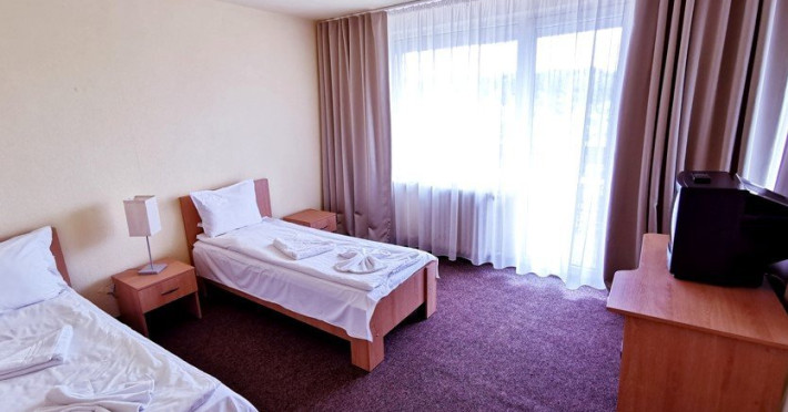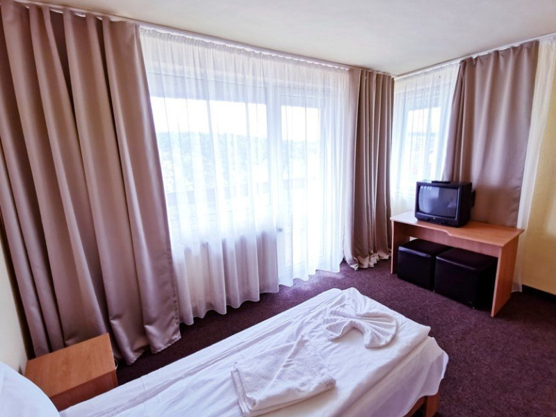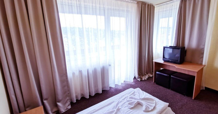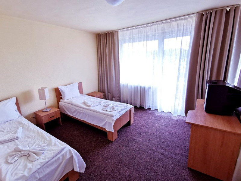 DESCRIERE CAMERE: Camerele duble contin pat matrimonial sau twin, mocheta, tv, tabureti si masuta de cafea, balcon, baie proprie cu cabina de dus. Cele renovate dispun si de aer conditionat.