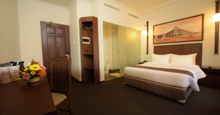 Hotel Nippon Colombo offers accommodation with 49 air-conditioned rooms featuring flat-screen televisions with cable programming and complimentary wireless internet access. Each room has a private bathroom with a shower, complimentary toiletries, a bidet, a safe, and a desk. Housekeeping is provided daily. Free WiFi is available throughout the property, and free private parking is available on site. Guests can enjoy the on-site bar and restaurant, which specializes in local cuisine, as well as a coffee shop/cafe. Room service is also available. A business center, complimentary newspapers in the lobby, and dry cleaning/laundry services are offered. The hotel features 24-hour reception, concierge services, a banquet hall, and wheelchair-accessible common areas. Guests may use a roundtrip airport shuttle for a surcharge. Car hire is available. The hotel is located within walking distance of Nawaloka Hospital and Colombo City Centre. Smoking is restricted to assigned zones. Buffet breakfasts are available daily for a fee. The Hotel Nippon Colombo is a hotel.