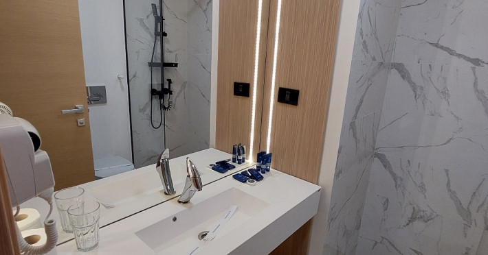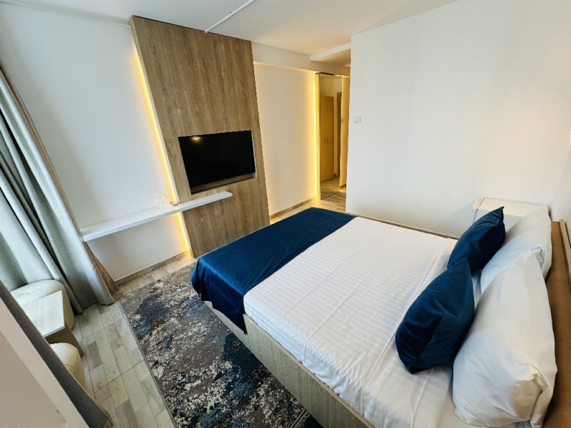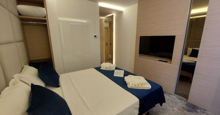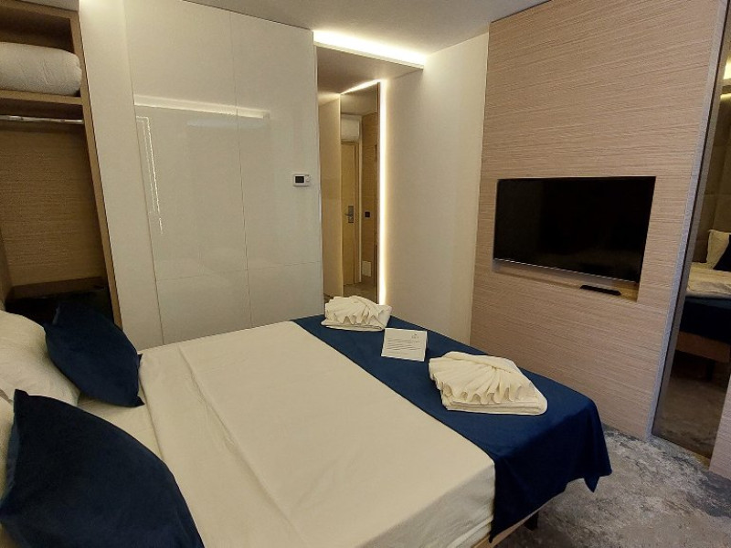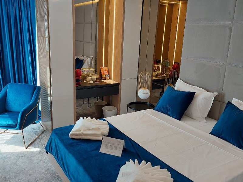 DESCRIERE CAMERE Toate camerele au fost recent modernizate si dispun de bai proprii cu dusuri, televizoare cu ecran plat si cablu, minibare, Wi-Fi gratuit si ofera produse de toaleta si uscatoare de par gratuite. Cele mai multe camere ofera vederi superbe asupra Marii Negre - statiunile Olimp si Neptun-Jupiter Nu au balcon. Camerele duble au 16 mp. Apartamentele au o suprafata de 35 mp si sunt formate din living cu canapea extensibila si dormitor cu pat matrimonial.
