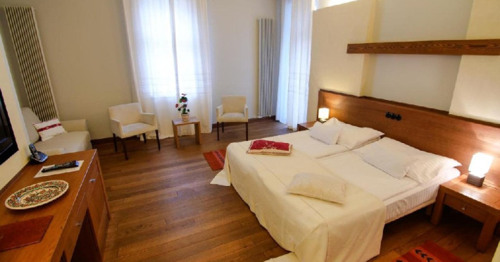 DESCRIERE CAMERE: 16 camere duble cu o suprafata de 22 mp, pat mare matrimonial sau twin, baie cu dus si uscataor de par, espresor de cafea, balcon, tv, minibar.