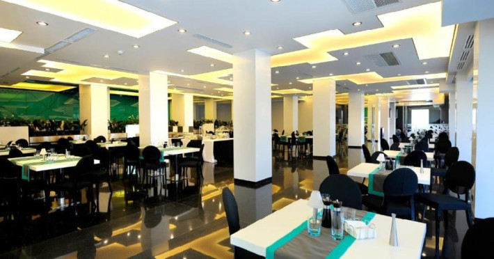 Restaurantul Plaza Fusion al hotelului serveste preparate traditionale, internationale, fusion, precum si preparate din bucataria orientala. De asemenea, Hotelul Plaza V Executive ofera zilnic ceai de dupa-amiaza si gustari la Cafe Society Plaza.