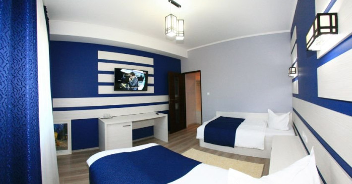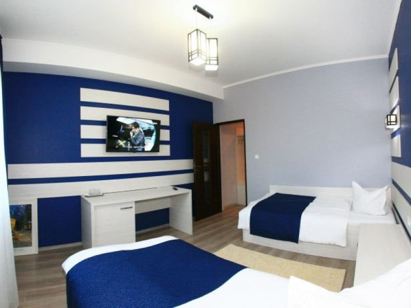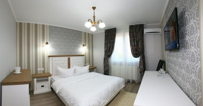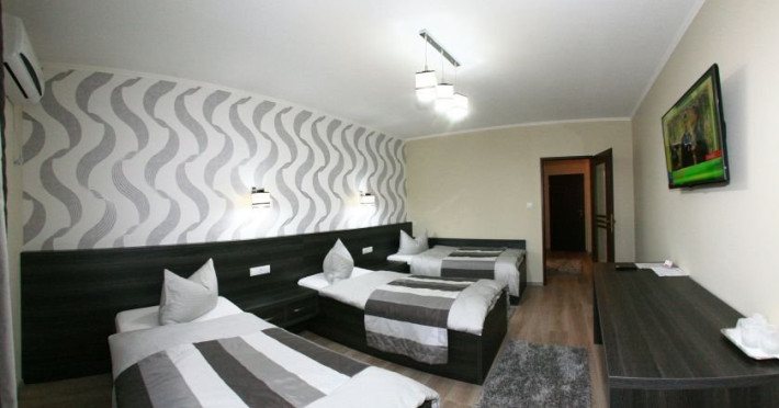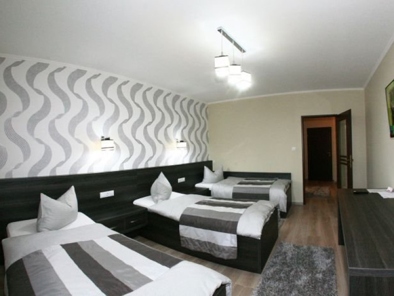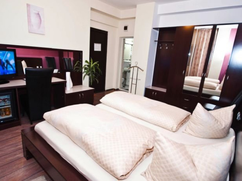 DESCRIERE CAMERE Clientii se pot relaxa in camere spatioase cu o aura moderna, fiecare avand baia proprie, clima, tv cu ecran plat, minibar,birou, uscator de par. Pentru clientii care vor o relaxare mai aparte, va oferim 3 camere de lux cu jacuzzi.
