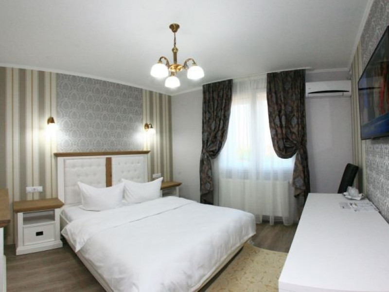 DESCRIERE UNITATE DE CAZARE Accesul la receptie se face pe un covor rosu, amplasata la etajul 1, oferind o primire eleganta si ospitaliera. Hotelul are o clasificare de 3 stele, garantand conditii optime si servicii de inalta calitate pentru o sedere placuta. Camerele sunt confortabile, moderne si accesibile, unele fiind dotate cu jacuzzi pentru un plus de relaxare. De asemenea, hotelul dispune de un restaurant exclusiv pentru clienti, care ofera un meniu clasic, cu posibilitatea de a pregati meniuri speciale la comanda, asigurand astfel o experienta culinara diversificata.