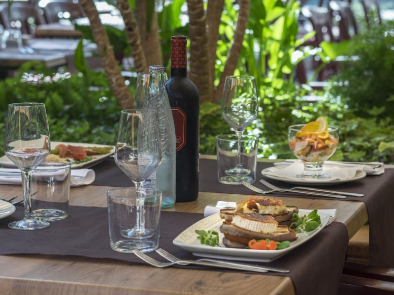 Hotelul are un restaurant bufet cu bucătărie deschisă și bufete tematice organizare ocazional. Puteți să vă relaxați la snack barul de lângă piscina principală. În timpul serilor de vară puteți să luați masa la restaurantul à la carte.