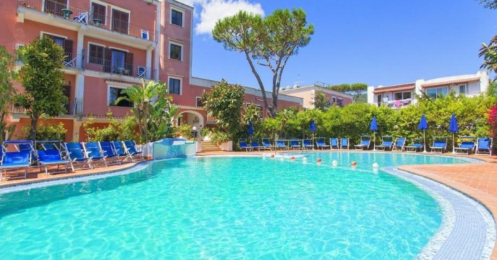 The Hotel San Valentino TermeandSpa is located in the center of Ischia, surrounded by a beautiful garden with oaks, pines, magnolia, splendid flowers and many other Mediterranean plants. An elegant Hall hosts an unusual vintage motorcycle exhibit (Moto Guzzi, Vespa, and the legendary Ape Calessino).