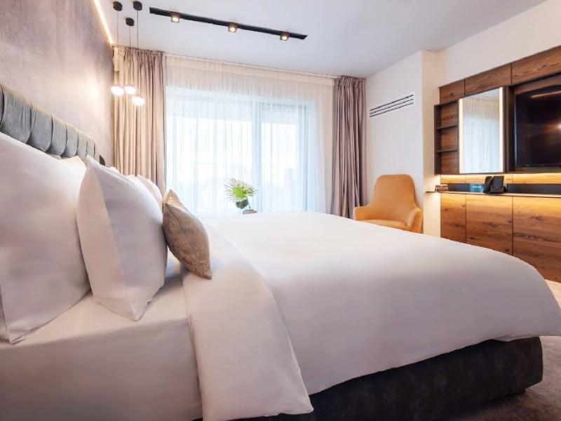 La Sun and Set Harmony Massage exista o gama variata de terapii, concepute pentru a imbunatati starea de bine. DESCRIERE CAMERE Camera dubla confort este dotata cu un pat king-size si ofera o combinatie ideala de intimitate si spatiu. Decorul modern, cu tonuri calde si mobilier, creeaza o atmosfera primitoare. Camera dubla smart este o camera compacta, dar bine gandita, fiind dotata cu un pat matrimonial sau doua paturi si ofera toate facilitatile necesare pentru un sejur placut. Camera dubla confort cu terasa este spatioasa si ofera doua paturi individuale, asigurand un somn odihnitor. Ferestrele mari permit o lumina naturala abundenta, iar decorul elegant completeaza confortul camerei. In plus, aceasta dispune de o terasa privata cu mobilier si balansoar, un spatiu perfect pentru momentele de relaxare in aer liber. Suita Signature Grand ofera confortul absolut, menit sa sublinieze exclusivitatea intr-un spatiu generos, la care se adauga o canapea extensibila si salon, dar si o baie secundara pentru un plus de confort. Dormitorul are pat king-size si draperii de tip black-out pentru a garanta un somn odihnitor, masa si fier de calcat in camera. Suita Junior Elegance este alegerea perfecta pentru familii sau pentru cei care apreciaza un spatiu generos. Paturile configurabile (duble sau twin) si canapeaua extensibila ofera o flexibilitate excelenta, fiind ideale pentru sejururi in doi sau pentru familii cu copii. Camera Executive Relax are un design modern si paturi configurabile (duble sau twin), iar fotoliul extensibil adauga un spatiu de relaxare suplimentar sau poate fi transformat intr-un pat comod. Toate camerele dispun de: saltele premium, smart TV de 55 inch cu modul hospitality activat, seif, set practic pentru intretinerea pantofilor, apa, ceai si cafea incluse, facilitati high tech, sistem de iluminat inteligent, control individual al climatizarii, acces in camera prin card, telefon, halat si papuci de camera, uscator de par, cosmetice, minibar, balcon. LOCALIZARE Hotel Simona Halep este situat in Poiana Brasov, la aproximativ 800 m de partia de schi Bradul. ATRACTII TURISTICE Partiile de schi, Castelul Bran, Castelul Peles, Cetatea Rasnov, Biserica Neagra.POLITICI Nu sunt permise animalele de companie. SERVICII DE MASA Mesele se servesc in restaurantul propriu.FACILITATI COPII Copiii se pot caza in suite sau camera executive. FACILITATI EVENIMENTE Sala moderna, cu o suprafata de 60 mp si o capacitate de pana la 27 de persoane, dispune de un ecran cu conectivitate intuitiva si usor de utilizat, sistem de sonorizare, flipchart-uri si un setup flexibil, cu fotolii comode si mese.
