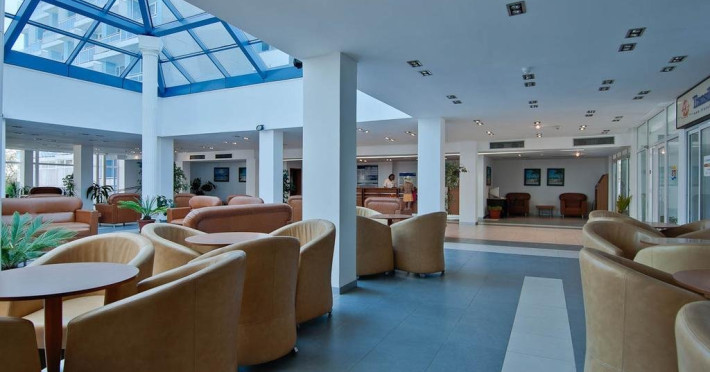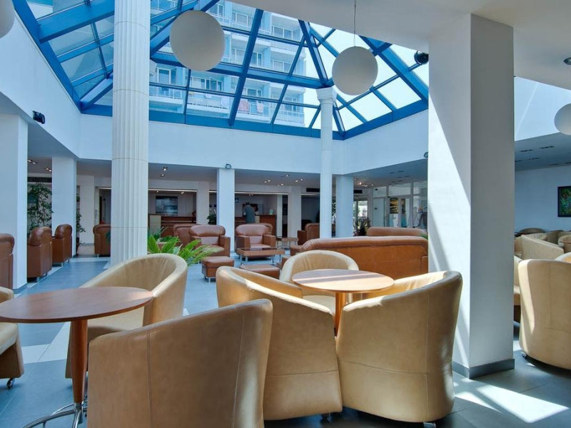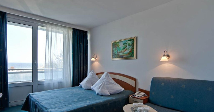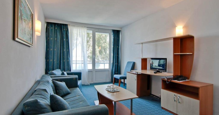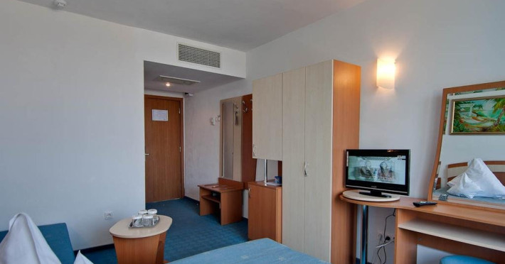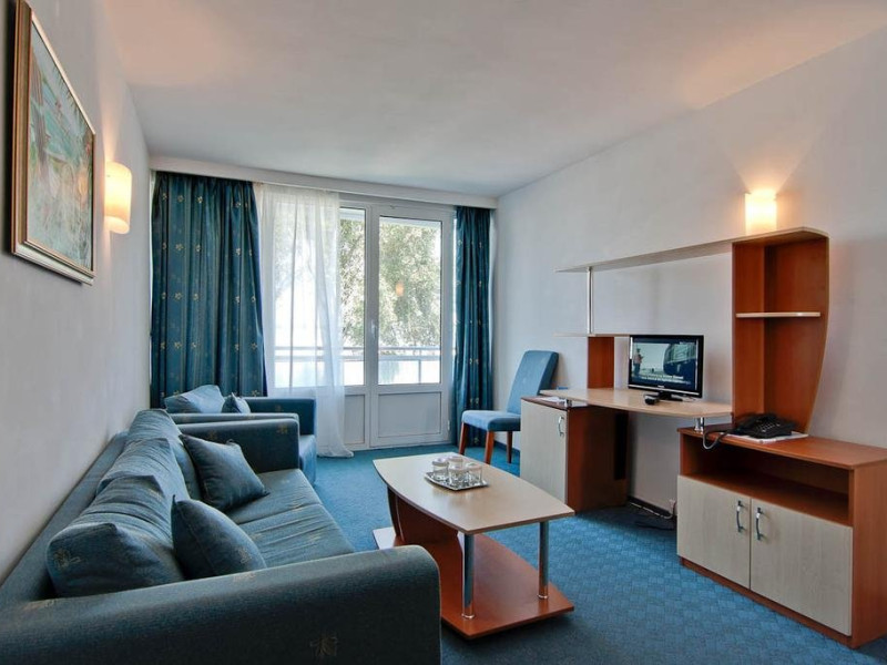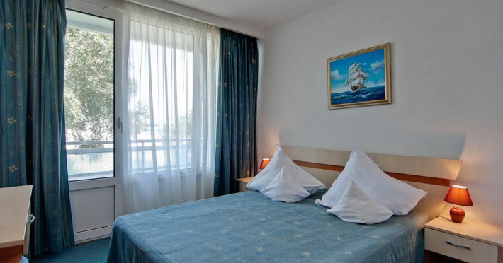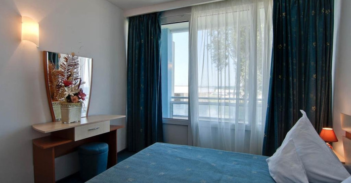 Camerele duble pot fi cu pat matrimonial (152 camere) sau cu 2 paturi twin (117 camere). Suprafata: 18 mp. Repartizarea camerelor duble se face de catre Receptie, in functie de disponibilitatea la momentul cazarii. Camerele single (18 mp) - diferenta dintre camera single si cea dubl este doar de masa, camera fiind aceeasi. Apartamentele (13 apartamente) sunt formate din dormitor cu pat matrimonial si living spatios dotat cu canapea extensibila. Au in dotare frigider si sunt dispuse cate unul pe fiecare etaj, pozitionate pe colt, cu vedere laterala la mare. Suprafata: 36 mp. Hotelul detine o baza de tratament proprie, iar la 20 de metri de el se afla Aqua Parc Balada.