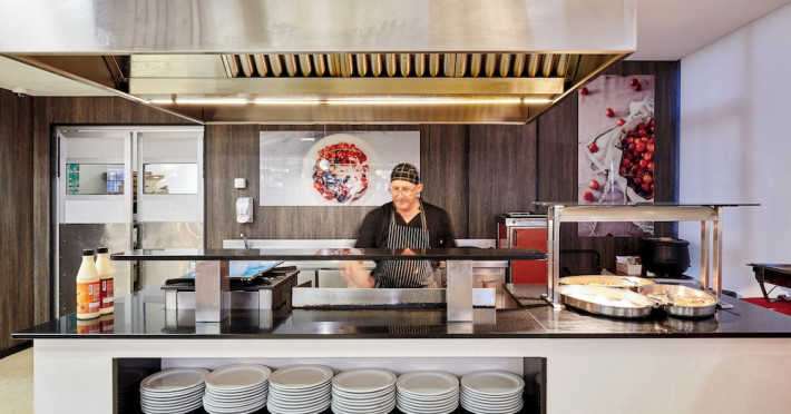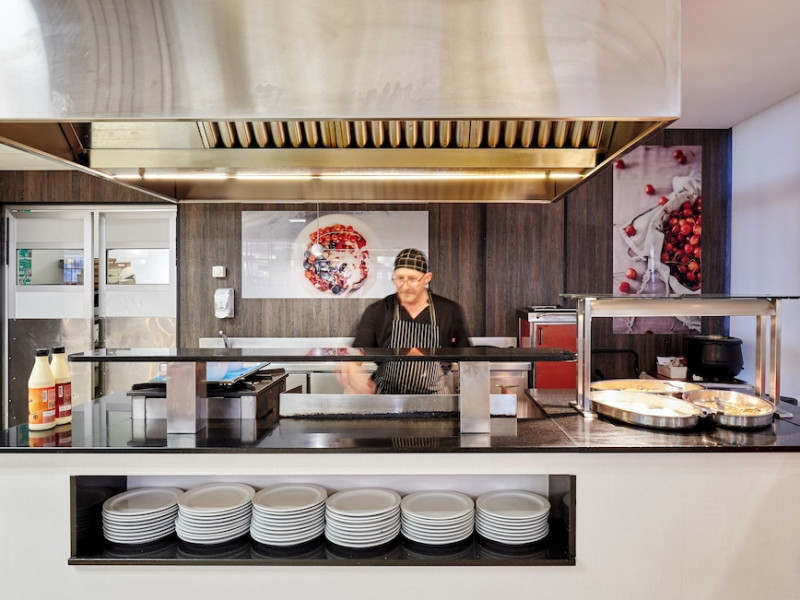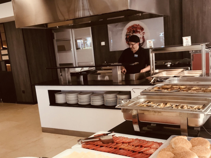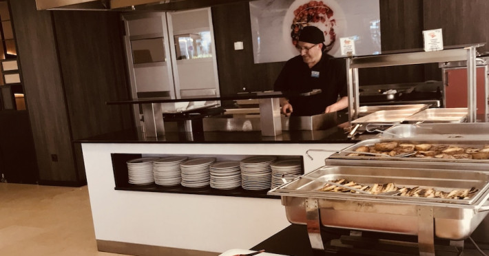 Restaurantul tip bufet al hotelului oferă o priveliște impresionantă asupra mării. Se pot solicita pachete cu mâncare la pachet, iar în incintă există automate cu băuturi și gustări.
