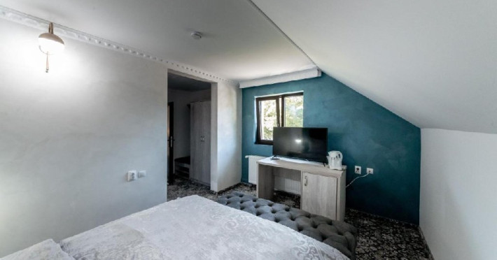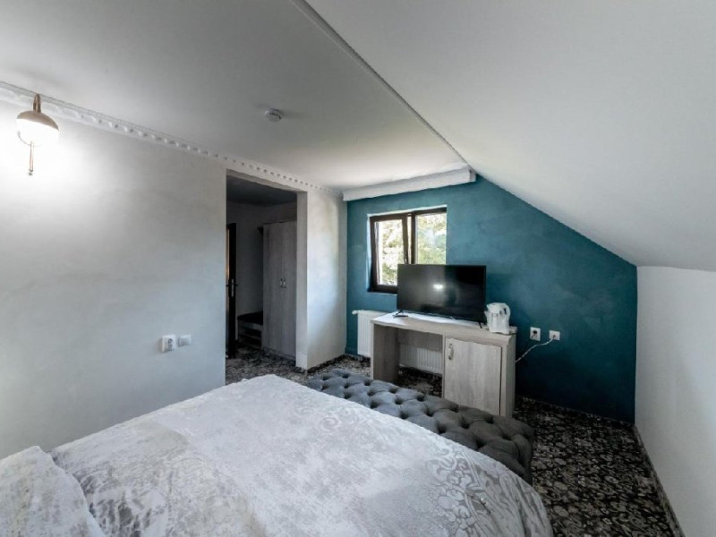 INFORMATII GENERALE Hotel Suru este amplasat intr-o locatie deosebita, la poalele Muntilor Bucegi, in orasul Busteni, la doar 7-8 minute de mers cu masina de partia Kalinderu. DESCRIERE UNITATE DE CAZARE Hotelul este pozitionat intr-un loc linistit, dar situat central. Partiile de schi, traseele de drumetii din Muntii Bucegi sunt toate usor accesibile. FACILITATI UNITATE Hotelul pune la dispozitie un restaurant cu terasa, parcare, internet Wi-Fi, sala de conferinte. DESCRIERE CAMERE Camerele dispun de baie proprie, TV, baie cu proprie cu dus, uscator de par, mini frigider. LOCALIZARE Hotel Suru este amplasat intr-o locatie deosebita, la poalele Muntilor Bucegi, in orasul Busteni, la doar 7-8 minute de mers cu masina de partia Kalinderu. ATRACTII TURISTICE Muzeul Memorial Cezar Petrescu, Crucea de pe Caraiman, Castelul Cantacuzino, partia Kalinderu, Cascada Urlatoarea, Pestera Ialomitei, varful Babele, Sfinxul din Bucegi, Biserica Domneasca - Nasterea Maicii Domnului, Manastirea Caraiman - Inaltarea Sfintei Cruci, Manastirea Ialomitei. SERVICII DE MASA Mesele se servesc in restaurantul propriu. POLITICI Nu sunt permise animalele de companie. FACILITATI COPII Nu se pot adauga paturi suplimentare in camere. FACILITATI EVENIMENTE Sala de conferinte cu o capacitate de 50 de locuri este perfecta pentru orice tip de intrunire. Mesele si scaunele pot fi organizate in format Classroom sau U Shape, iar privelistea spre muntii Bucegi completeaza cadrul perfect pentru evenimentul dumneavoastra.