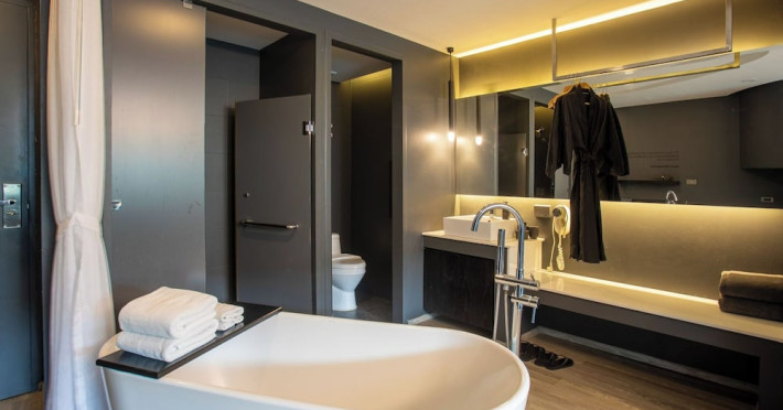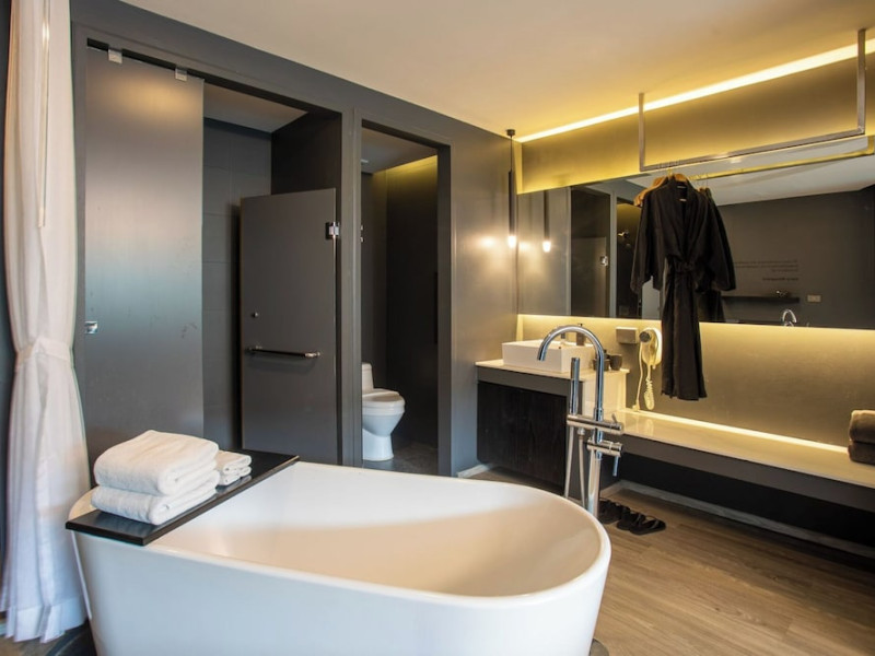 Located in Phuket Town, Hotel Tide Phuket offers a relaxing beachfront experience on Siray Bay Beach. This lifestyle hotel features a restaurant, bar, outdoor swimming pool, terrace, and fitness center. Guests can enjoy complimentary Wi-Fi throughout their stay and take advantage of convenient amenities such as room service, a 24-hour front desk, express check-in/check-out, and luggage storage. The air-conditioned guestrooms include a seating area, flat-screen TV with cable channels, a safety deposit box, and a private bathroom with a shower, hairdryer, free toiletries, and bathrobes. Rooms also feature phones, electric kettles, and complimentary bottled water. Some rooms offer a balcony or terrace. Free private parking is available onsite, and airport transfer and taxi services can be pre-booked. Breakfast is available, and BBQ facilities are provided. Smoking is permitted only in designated areas. The Hotel Tide Phuket (ex. The Tide Beachfront Siray Phuket) is a hotel.