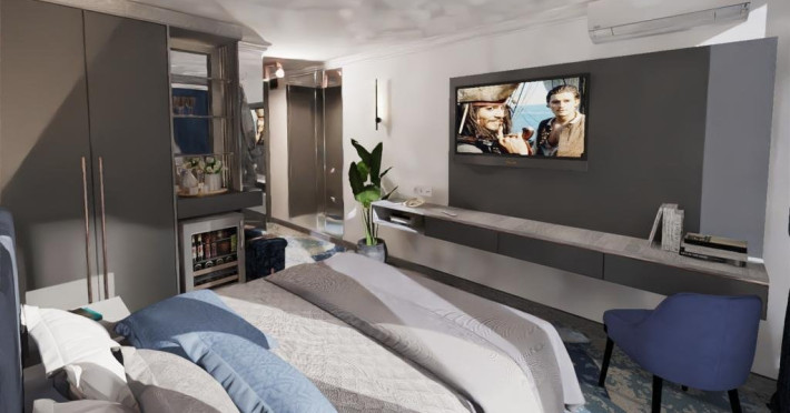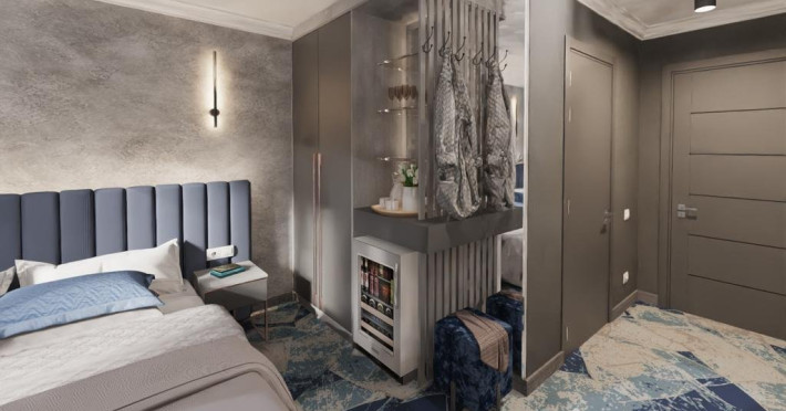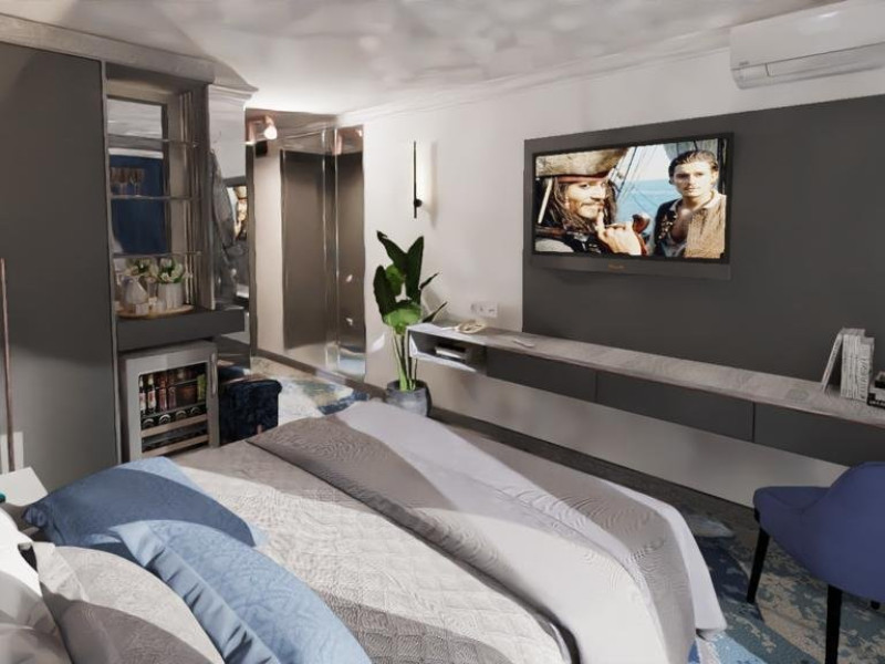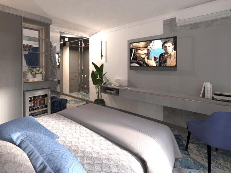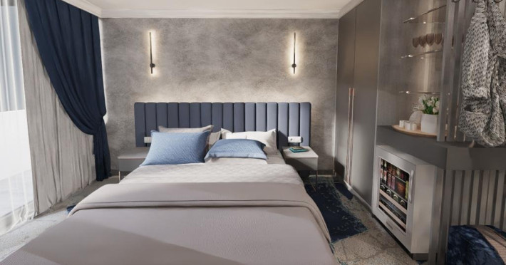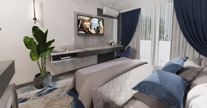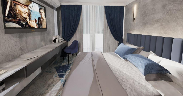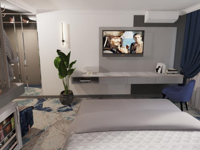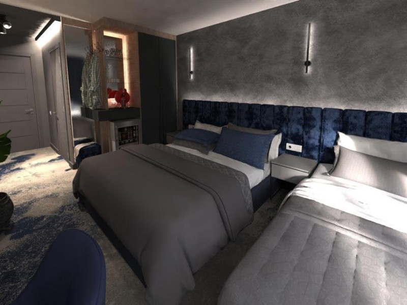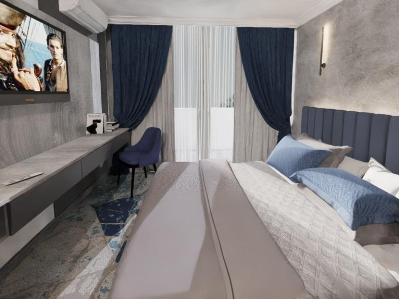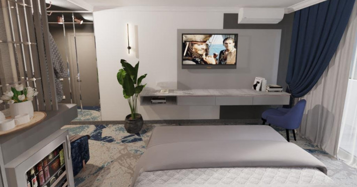 DESCRIERE CAMERE Dotari camere: aer conditionat, tv, seif, minibar, internet wireless, baie cu dus, uscator de par, balcon. Camera Dubla dispune de pat matrimonial; Camera Tripla dispune de 3 paturi de 1 persoana, dintre care 2 se pot uni; Apartamente Standard: dispun de doua dormitoare cu pat matrimonial; Apartamentele Vedere Mare au suprafata putin mai mare decat cele standard.
