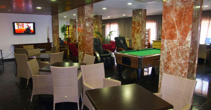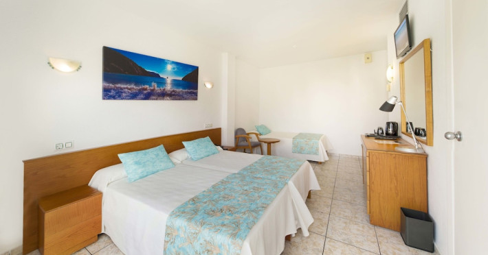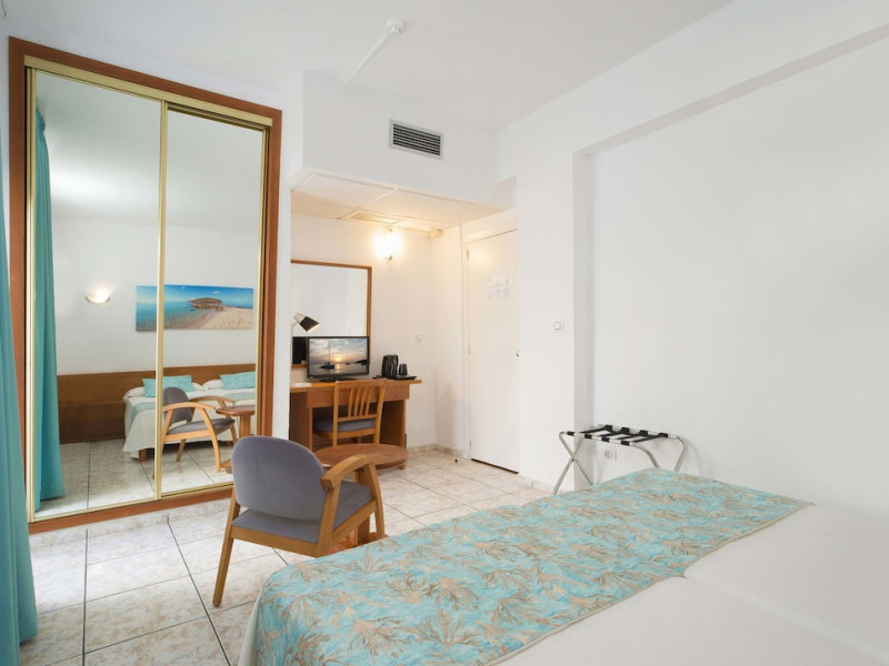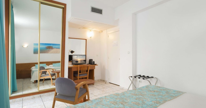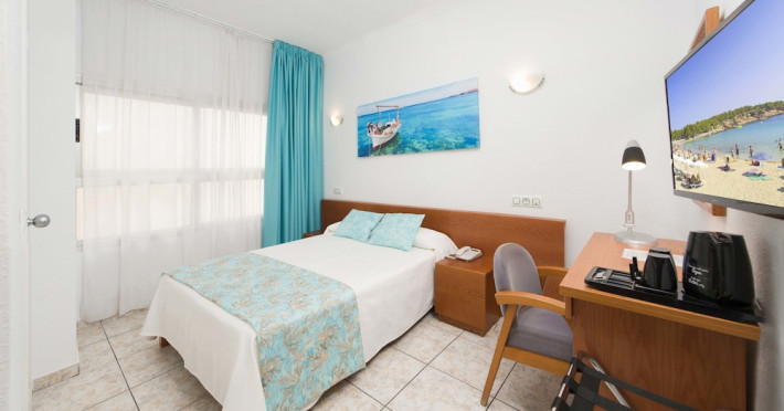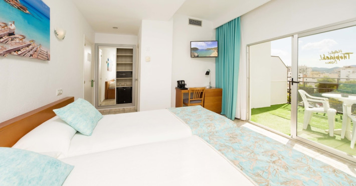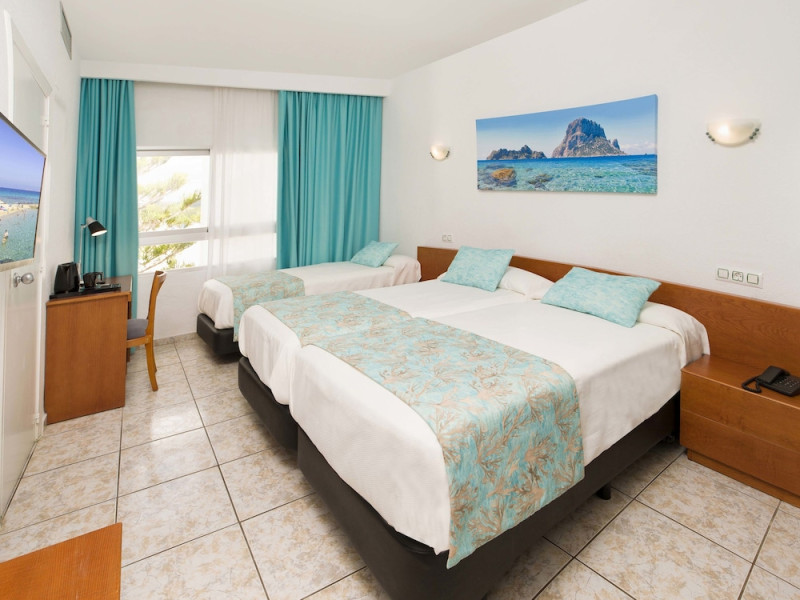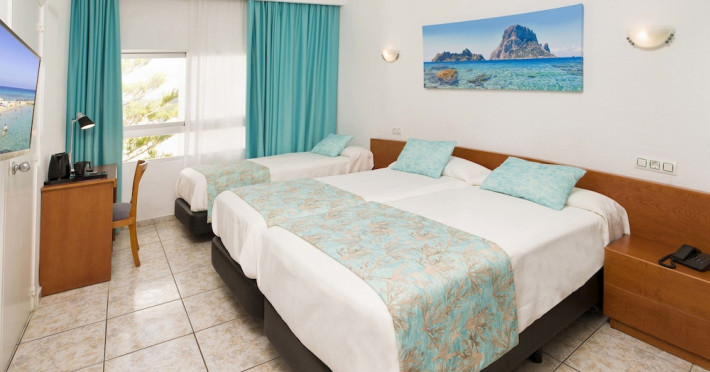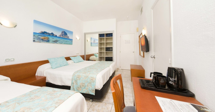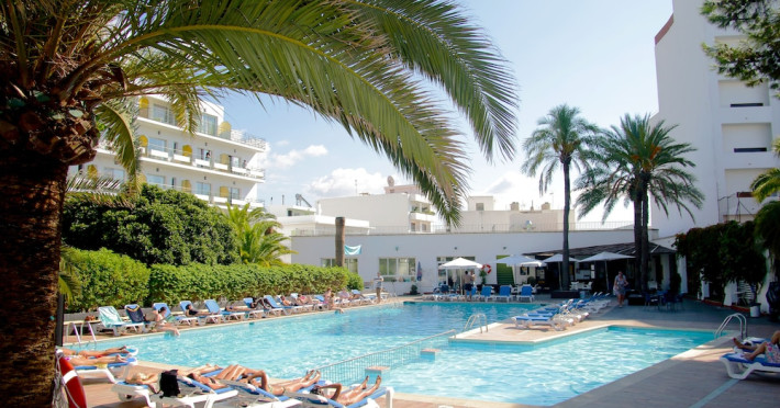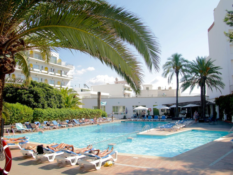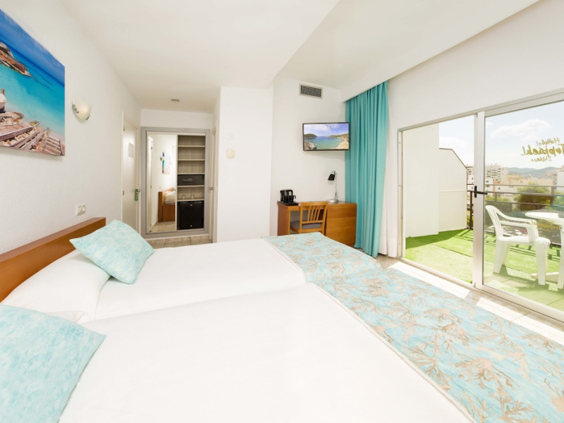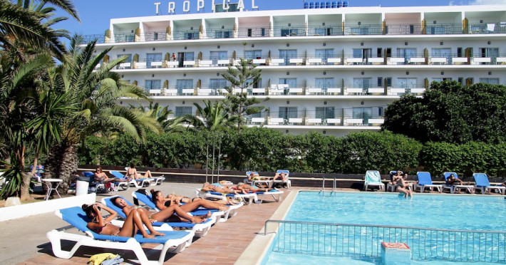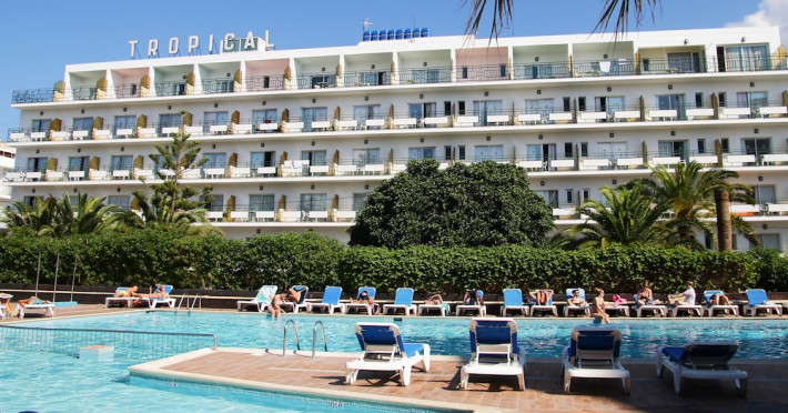Located in the heart of San Antonio de Portmany, Hotel Tropical is a short walk from the beach, harbor, and bus station, offering convenient access to the island. The hotel, renovated in 2010, features air-conditioned rooms with free Wi-Fi, satellite TV, telephone, work desk, mini-fridge, and a private bathroom with shower, hairdryer, and complimentary toiletries. Guests can enjoy a restaurant, cafe, bar, and poolside bar, as well as amenities such as a 24-hour reception, lift access, luggage storage, a games room, and a children's playground. Recreational facilities include an outdoor pool and a fitness center. Additional services include currency exchange, bicycle hire, complimentary wireless internet access, a computer station, and multilingual staff. The hotel is near shops, bars, nightlife, and the San Antonio promenade. Eden and Es Paradis nightclubs are nearby, and Ibiza Town is a 20-minute drive away. Buffet breakfasts are available daily for a fee. The hotel is open seasonally from May until October. The Hotel Tropical Ibiza is a hotel.