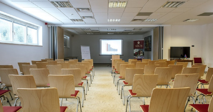 FACILITATI EVENIMENTE: .Hotelul TTS Spa Wellness Covasna dispune de 2 sali de conferina situate la etajul IV si facilitati de coffe break. Salile sunt dotate cu scaune cu tablia pentru scris, birou pentru lector, videoproiector, sistem de sonorizare, flipchart cu toate consumabilele necesare. Salile noastre de conferinta pot sa gazduiasca evenimente de pana la 100 persoane, avand acces la internet Wi Fi; Salile sunt indicate pentru seminarii, prezentari din domeniul vanzarilor, conferinte de presa, prezentari, training-uri, interviuri, etc.