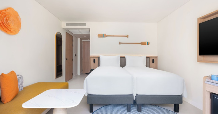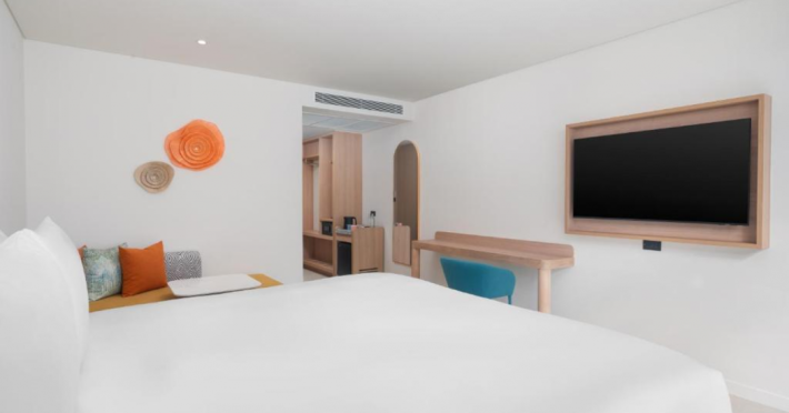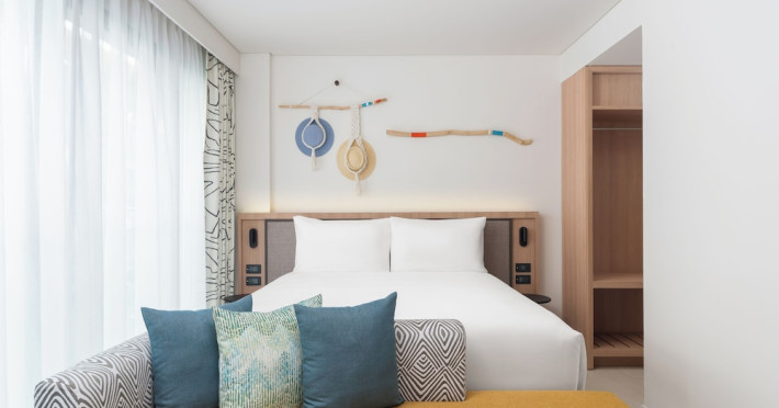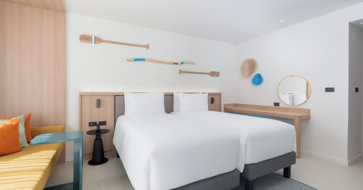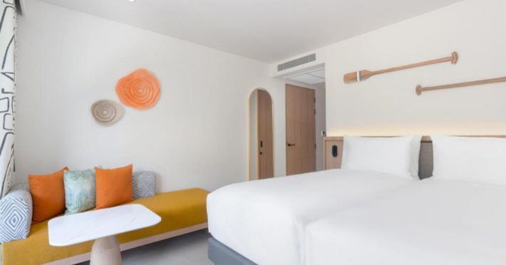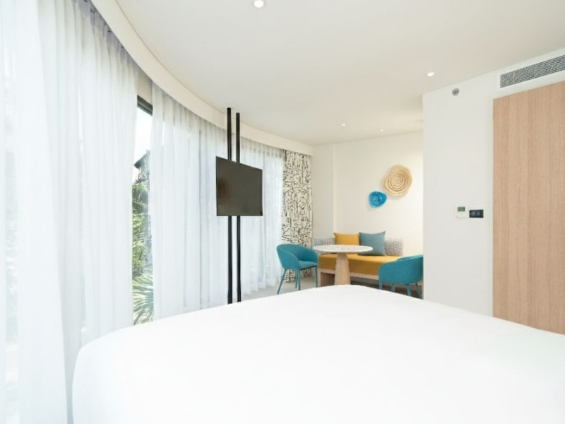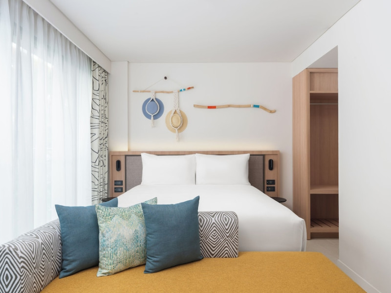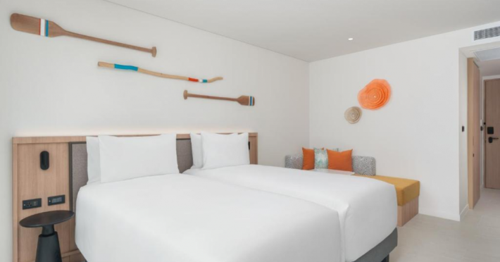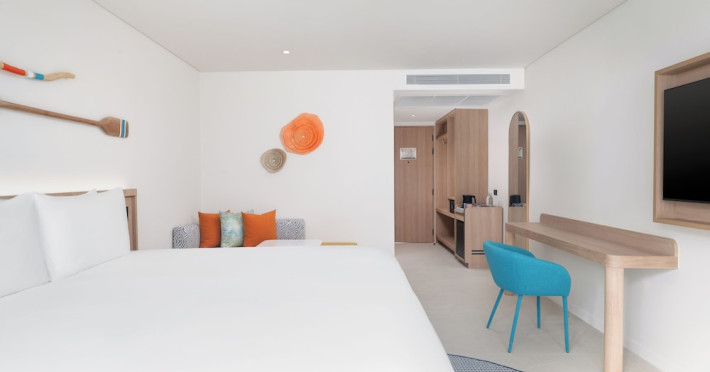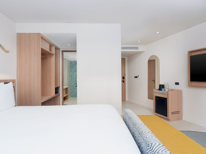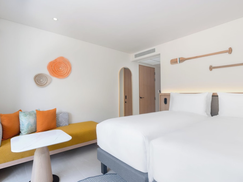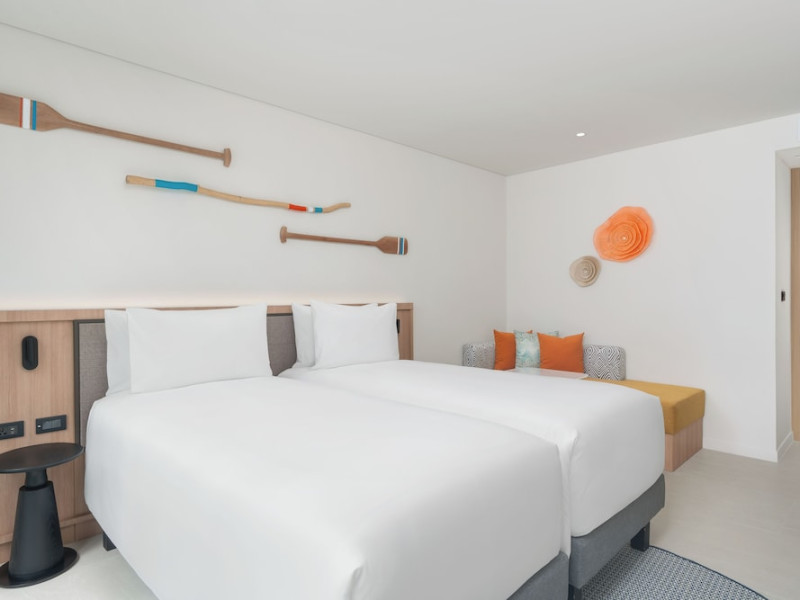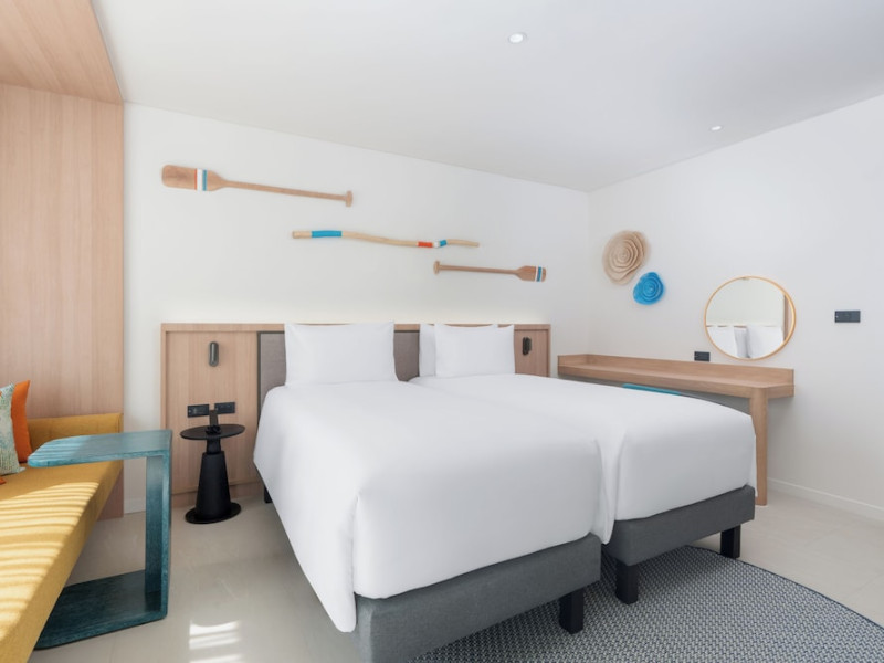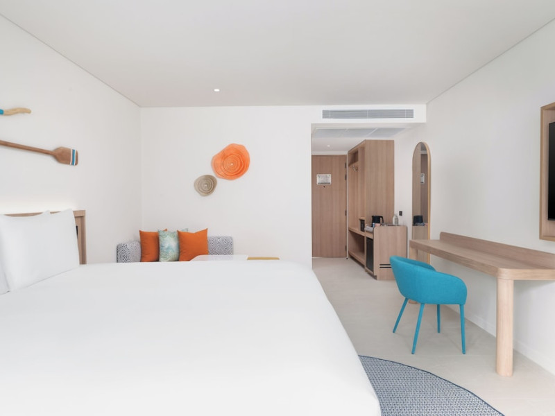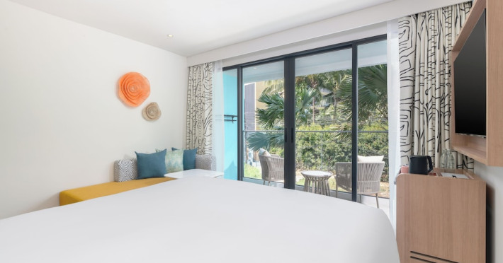 Situated in Phuket Town, the property is just a 5‑minute stroll from Bang Tao Beach. Local landmarks include the Two Heroines Monument (5.6 miles) and Jungceylon Shopping Center (11 miles), while Phuket International Airport is also 11 miles away. Guests can unwind at the rooftop pool, work out in the fitness center, or relax on the sun terrace and outdoor seating areas. Complimentary private parking and bicycle storage are provided. Rooms come with private bathrooms, balconies overlooking the garden or city, and modern conveniences such as free Wi‑Fi, flat‑screen TVs, and work desks. Options include family rooms and interconnecting units to suit different guest needs. The ibis Styles Phuket Bangtao is a hotel.