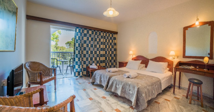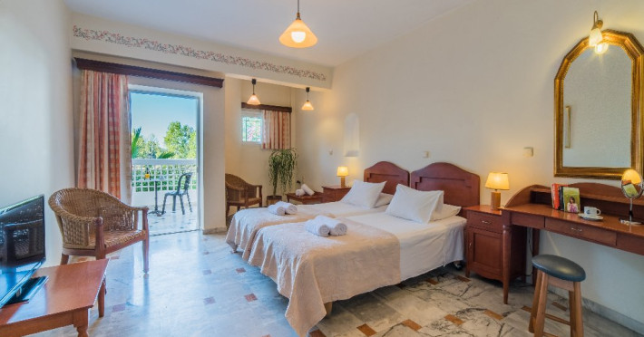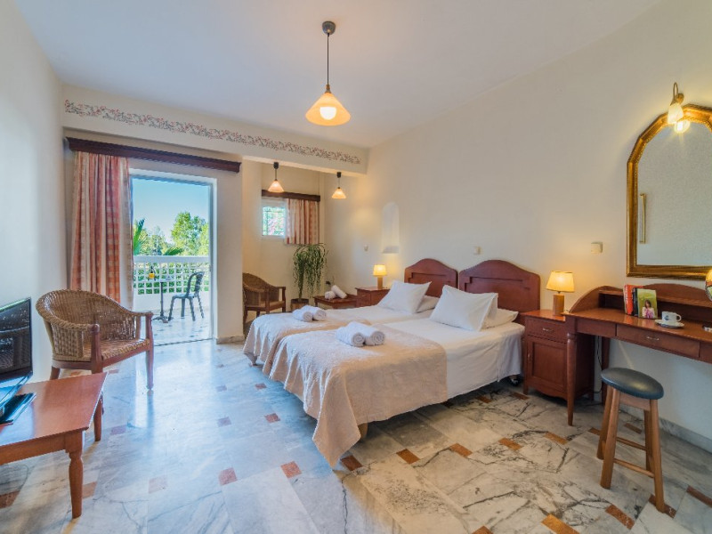 Descriere: Hotelul de 38 de camere este situat intr-o zona verde, linistita, intre statiunile Kalamaki si Laganas, fiind recomandat familiilor.