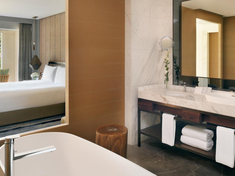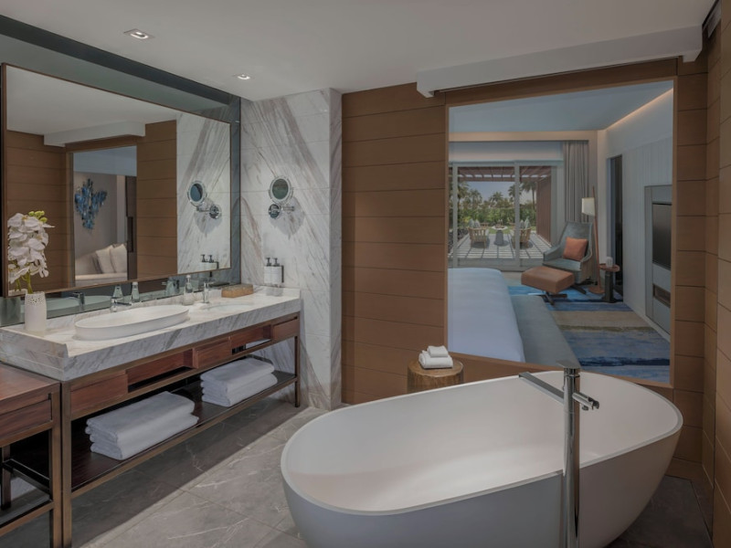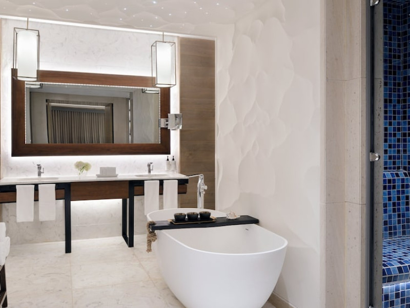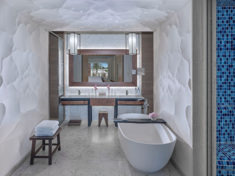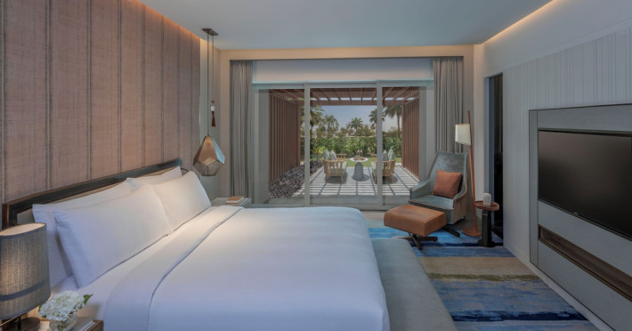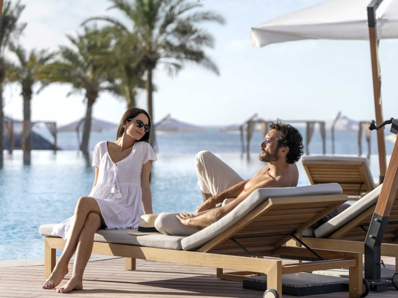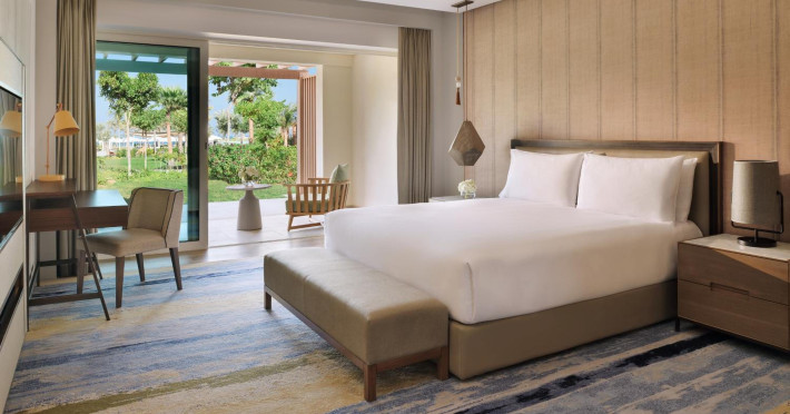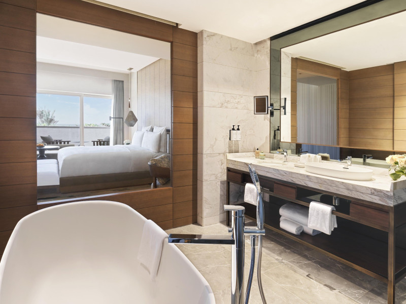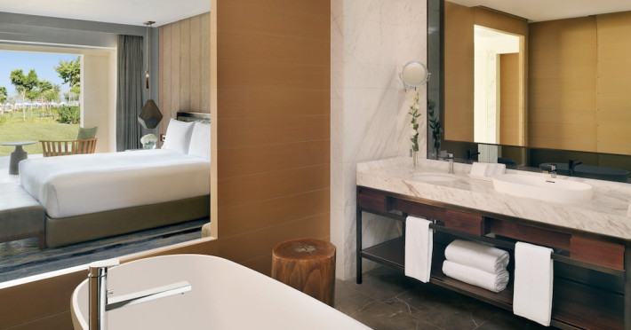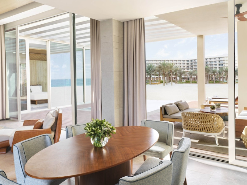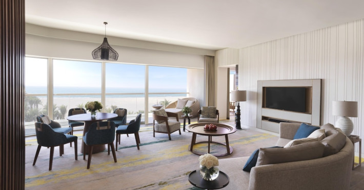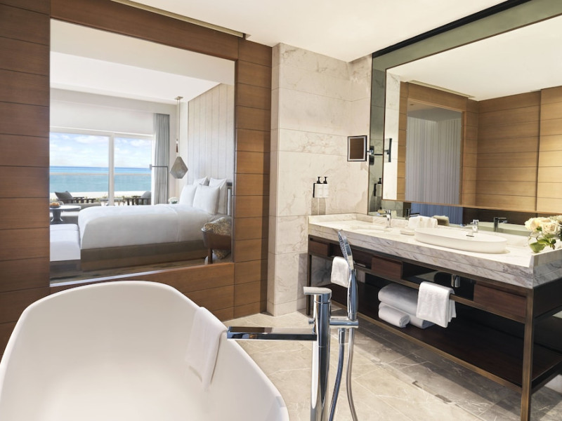 InterContinental Ras Al Khaimah Mina Al Arab Resort & Spa offers luxurious island living on the Arabian Gulf, surrounded by desert and mountains, a 45-minute drive from Dubai. This resort features 351 individually furnished guestrooms with private balconies, minibars, flat-screen TVs, and Select Comfort beds. Private bathrooms include separate bathtubs and showers. Amenities include six restaurants and bars (including Levant and Nar, offering Turkish cuisine), a full-service spa, a 24-hour health club, an outdoor pool, a private beach, a children's playground, complimentary Wi-Fi, concierge services, a business center, and free valet parking. Meeting and conference space is available. Buffet breakfast is served daily (times vary). The resort is approximately 8.8 km from Al Hamra Mall, 9.8 km from Al Hamra Golf Club, and 19.3 km from the National Museum of Ras al Khaimah. Ras Al Khaimah International Airport is 25 km away. The resort offers free bikes and free private parking. Tennis is available on-site. Staff speak Arabic, German, English, and French. The InterContinental Ras Al Khaimah Mina Al Arab Resort and Spa, an IHG Hotel is a hotel.