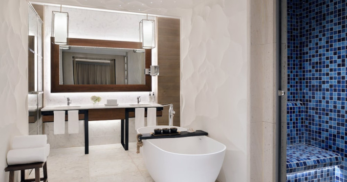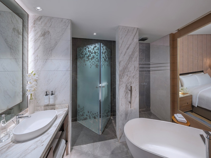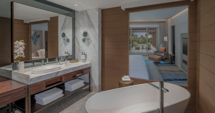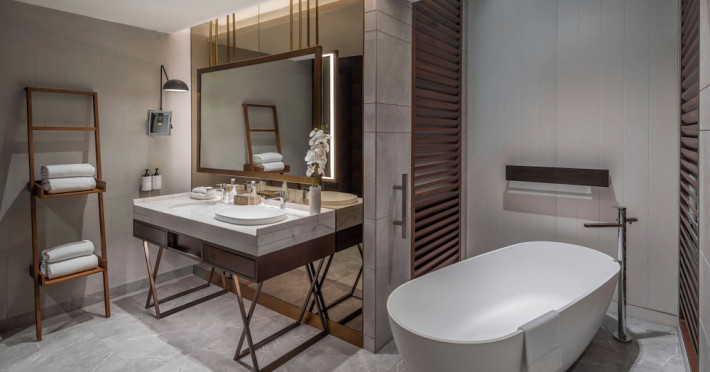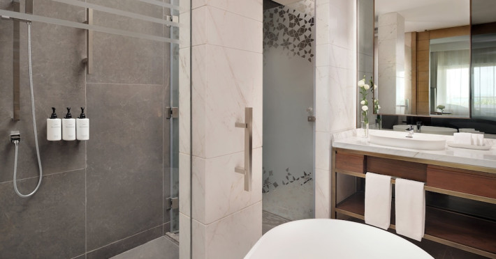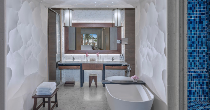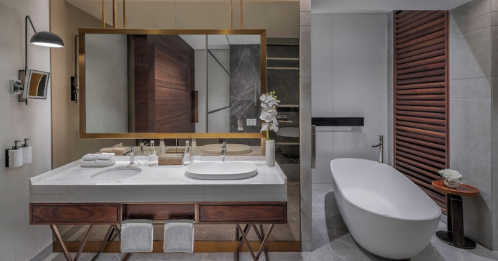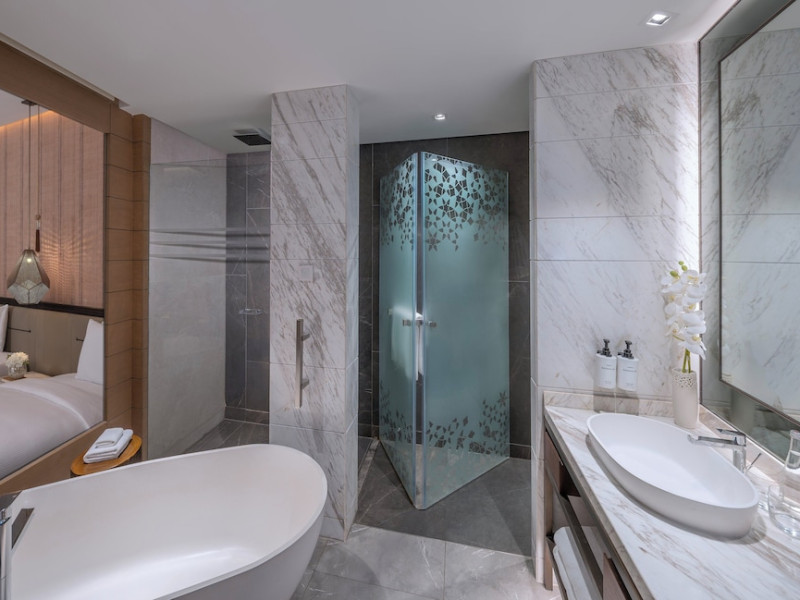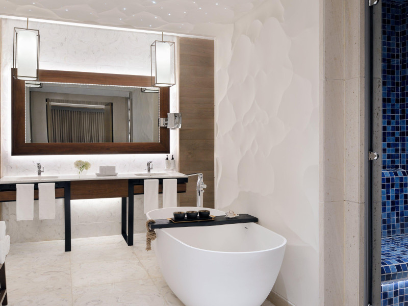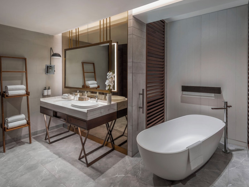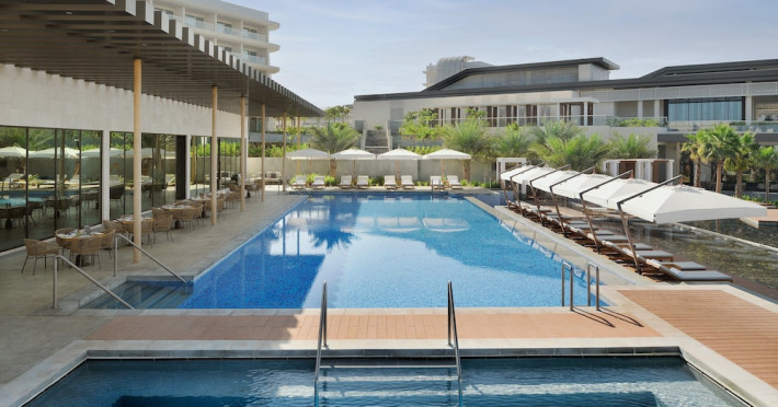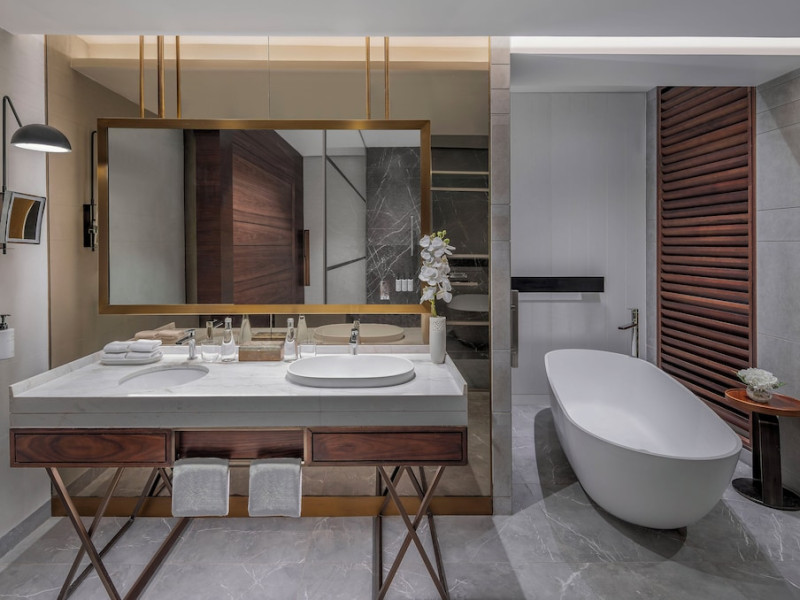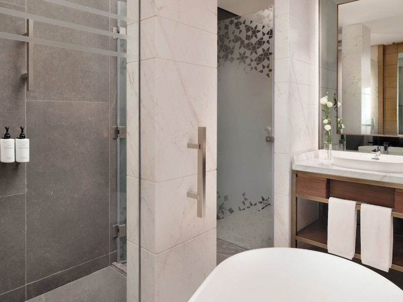 InterContinental Ras Al Khaimah Mina Al Arab Resort & Spa offers luxurious island living on the Arabian Gulf, surrounded by desert and mountains, a 45-minute drive from Dubai. This resort features 351 individually furnished guestrooms with private balconies, minibars, flat-screen TVs, and Select Comfort beds. Private bathrooms include separate bathtubs and showers. Amenities include six restaurants and bars (including Levant and Nar, offering Turkish cuisine), a full-service spa, a 24-hour health club, an outdoor pool, a private beach, a children's playground, complimentary Wi-Fi, concierge services, a business center, and free valet parking. Meeting and conference space is available. Buffet breakfast is served daily (times vary). The resort is approximately 8.8 km from Al Hamra Mall, 9.8 km from Al Hamra Golf Club, and 19.3 km from the National Museum of Ras al Khaimah. Ras Al Khaimah International Airport is 25 km away. The resort offers free bikes and free private parking. Tennis is available on-site. Staff speak Arabic, German, English, and French. The InterContinental Ras Al Khaimah Mina Al Arab Resort and Spa, an IHG Hotel is a hotel.