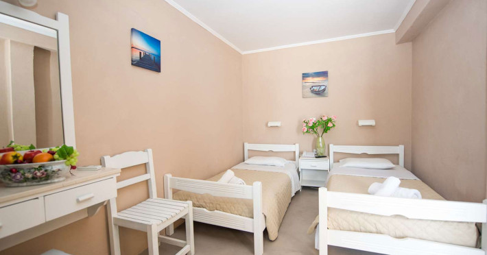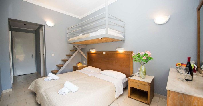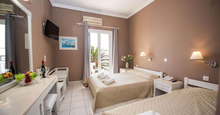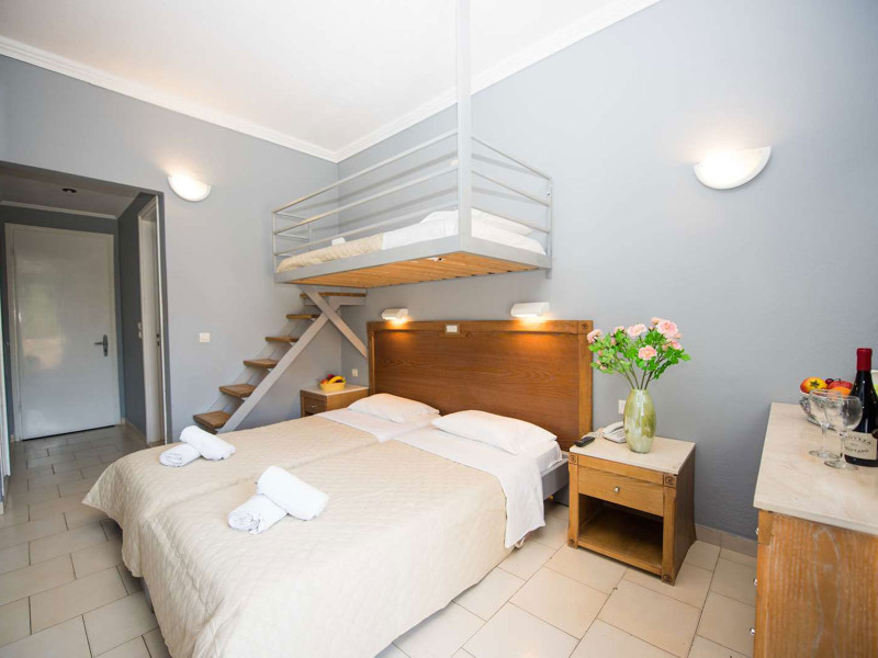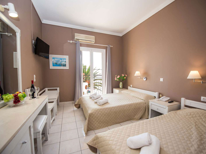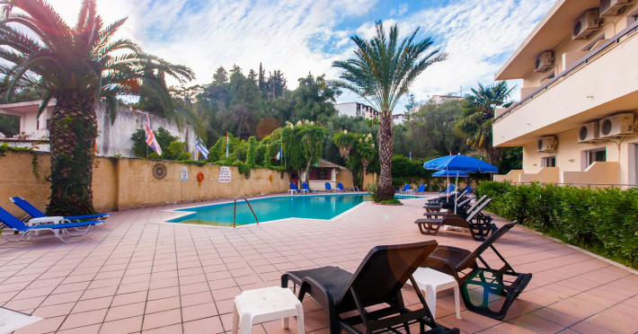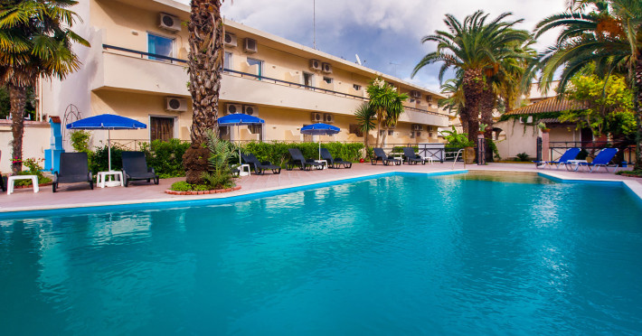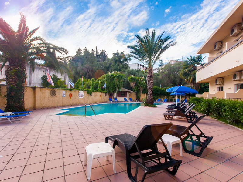 This hotel in the Ipsos-Corfu beach area known as the Golden Mile. Conveniently located in the middle of Ipsos Bay, you will be a few minutes away from all activities. Via public or rented transport, you can easily reach any point in Corfu. You will find a warm and friendly atmosphere to help make your stay on the premises an unforgettable one.