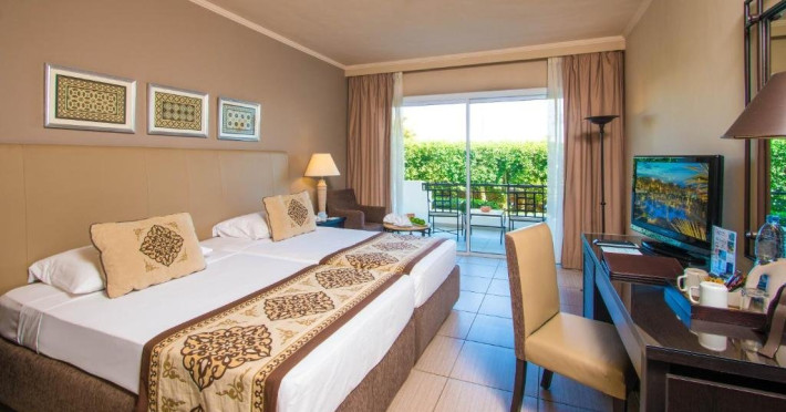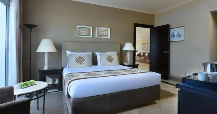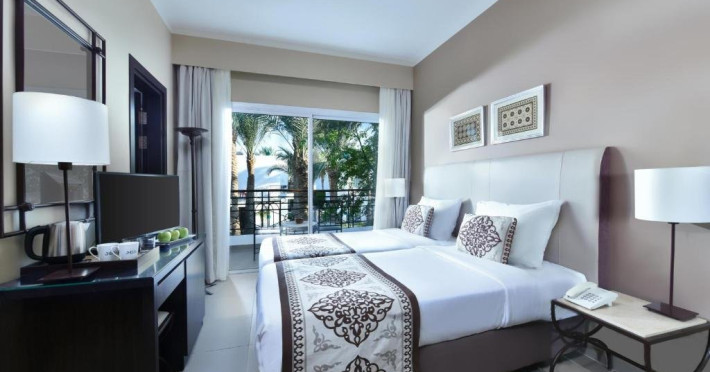 Dotari camere: Jaz Fanara Resort are 262 camere si suite. Fiecare  camera este dotata cu aer conditionat, minibar, TV cu ecran plat, seif, pat  matrimonial sau paturi twin, baie privata cu cabina de dus, uscator de par, facilitate  pentru preparare ceai sau cafea.
