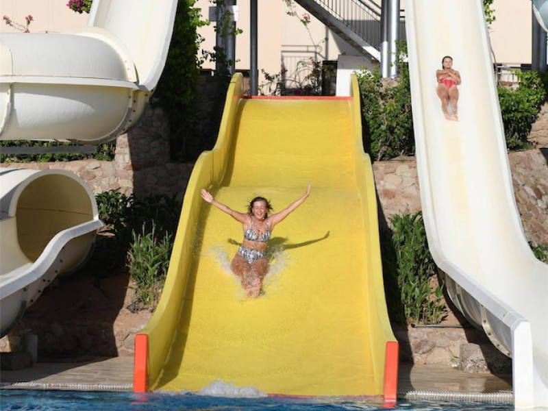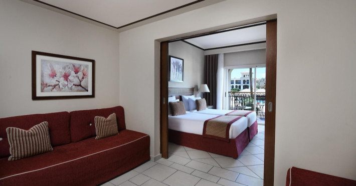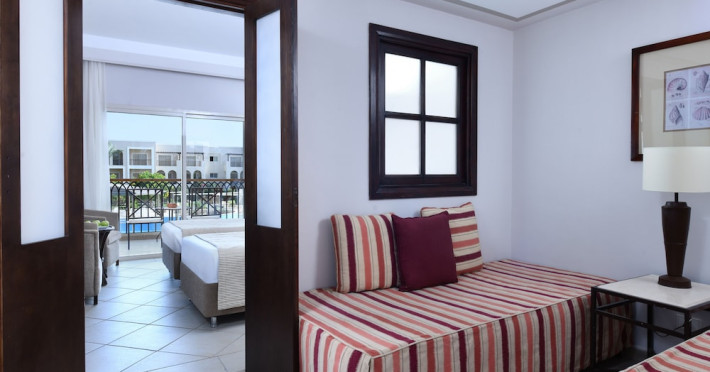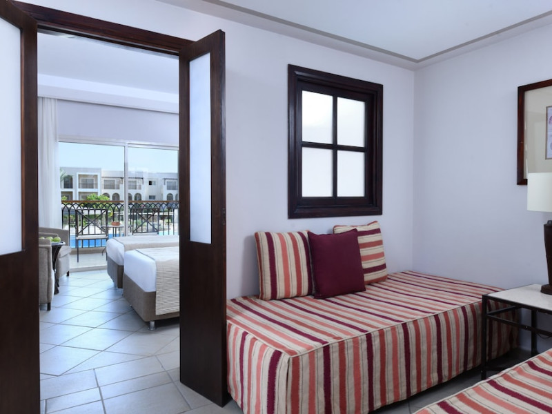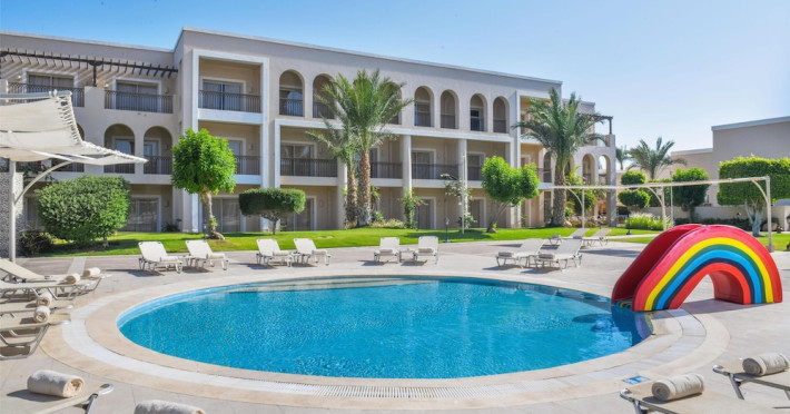 Located in Sharm El Sheikh (Nabq), JAZ Mirabel Beach - All Inclusive offers an all-inclusive experience with meals and beverages included at onsite dining establishments; charges may apply for certain restaurants, special meals, and beverages. Guests can relax at the full-service spa with massages, body treatments, and facials, and enjoy recreational amenities including 12 outdoor swimming pools, outdoor tennis courts, and a waterslide. The property features complimentary wireless internet access, concierge services, and babysitting (surcharge). Dining options include 5 restaurants, including Al Nakheel serving local and international cuisine, room service (during limited hours), a beach bar, 8 bars/lounges, and 4 poolside bars. A complimentary English breakfast is served daily from 7:00 AM to 10:00 AM. The property also offers dry cleaning/laundry services, a 24-hour front desk, and multilingual staff. Free self parking is available onsite. The 1001 guestrooms feature minibars, LCD televisions, private balconies or patios, complimentary wireless internet access, satellite programming, and private bathrooms with rainfall showerheads and complimentary toiletries. Nearby attractions include Nabq Bay and Ras Mohammed National Park. The preferred airport is Sharm El-Sheikh Intl. Airport (SSH). The Jaz Mirabel Beach and Resort is a hotel.