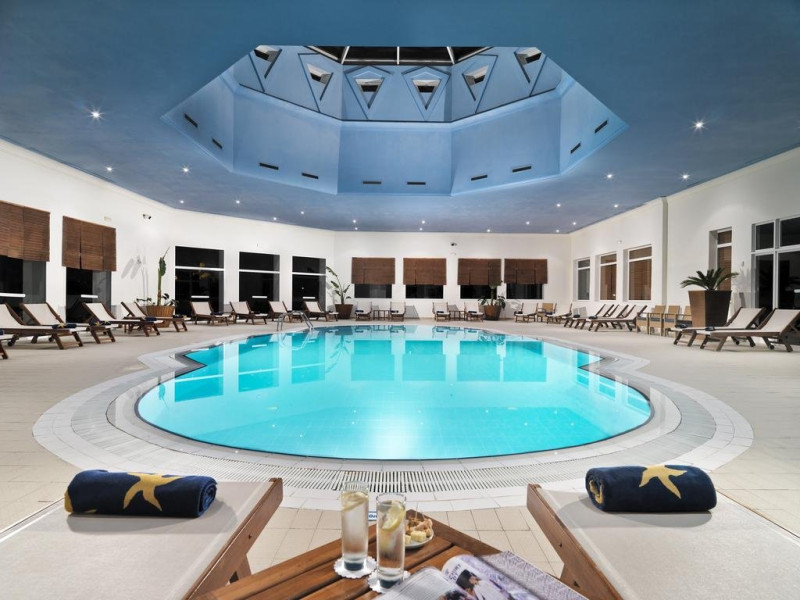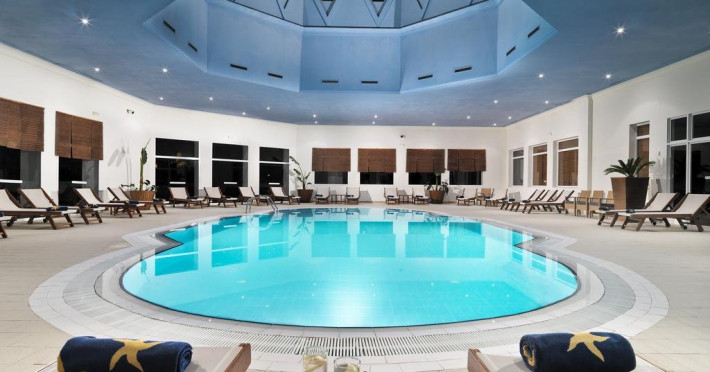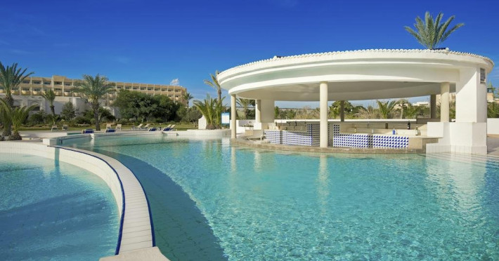 Descriere: Hotelul de 5 stele este situat in Yasmin Hammamet, langa plaja privata si la cateva minute de Medina. Are in total 236 camere intr-o cladire cu 4 etaje si a fost construit in 2005. Facilitati camera: acestea sunt dotate cu minibar, balcon, aer conditionat,telefon cu linie directa, TV sateit, seif, uscator de par, wifi gratuit, fierbator electric, facilitati pentru baie, prosoape schimbate zilnic. La cerere se ofera gratuit patut/tarc pentru bebelus. Facilitati plaja: Hotelul dispune de o plaja privata cu sezlonguri gratuite si deasemenea de o picina interioara si exterioara. Faciitati masa: Serviciile de masa sunt all inclusive, servite la restaurantul principal din bucataria tunisiana si international si contracost se poate opta pentru unul din cele doua restaurant a la carte.