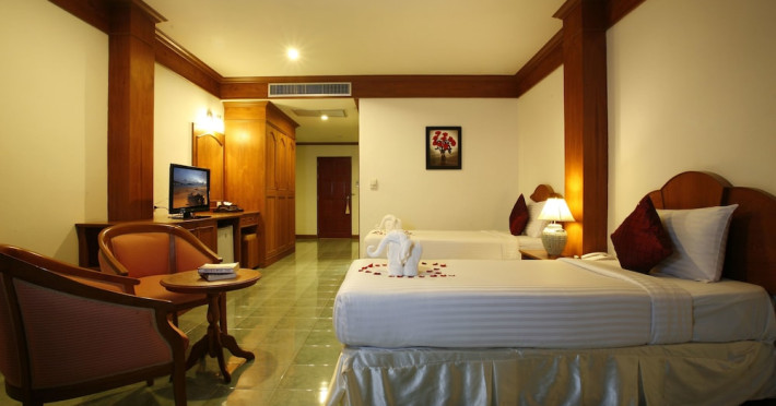 Jiraporn Hill Resort offers budget-friendly accommodations near Patong Beach, featuring an outdoor pool and a terrace. The hotel provides complimentary wireless internet access, concierge services, and a 24-hour front desk. Guests can enjoy on-site dining with room service and a daily buffet breakfast (for a fee). The air-conditioned rooms include a private bathroom, a balcony, a flat-screen TV with cable channels, a refrigerator, a safety deposit box, and a desk. Airport transfers and car rental services are available. It is located within 2 km of Jungceylon Shopping Center and Phuket Simon Cabaret. The Jiraporn Hill Resort Patong Phuket is a Leisure, Tourist hotel. The nightlife/restaurants are located in the hotel.
