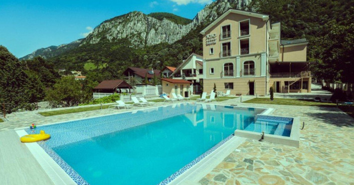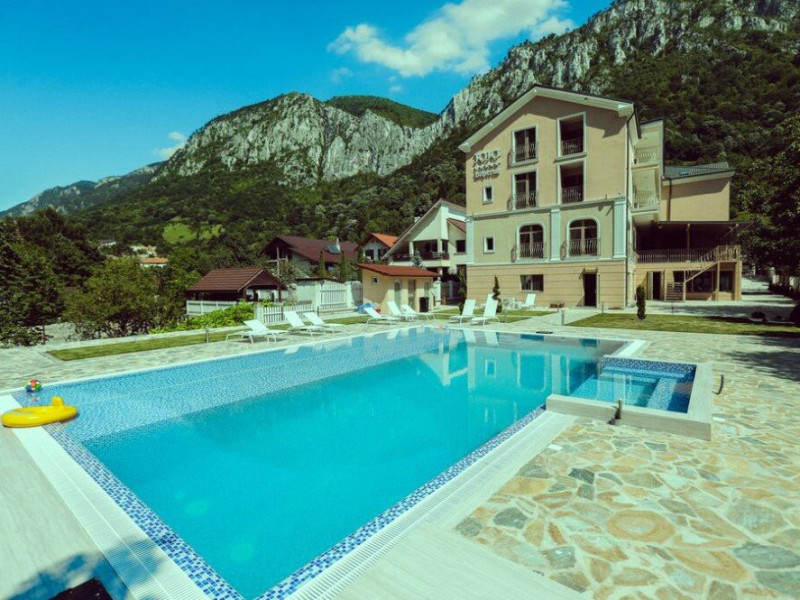 Locul unde povestile devin realitate- Am continuat povestea, avand o experienta in domeniul turismului cu Pensiunea JOJO 2 ne-am gandit sa mergem mai departe si am construit o noua pensiune resort de 5 stele JOJO Imperial- o pensiune moderna dar totodata boema, o intoarcere in timp la provocarea unor arhitecti vizionari , iscusiti care au creat o atmosfera regala a sec. al XIX-lea cu amprenta stilului art deco. Pensiunea este amplasata in orasul Baile Herculane pe stada Vicol 48, aproape de zona centrala, intr-un cadru pitoresc cu panorama spre muntii Cernei si muntii Domogled cu iesire la raul Cerna. In incinta locatiei veti afla receptia cu lobby bar , restaurant cu zone de separeu si terasa , camere spatioase si apartamente de cazare deservite de lift, apartament pentru persoanele cu dizabilitati si un Centru SPA modern.