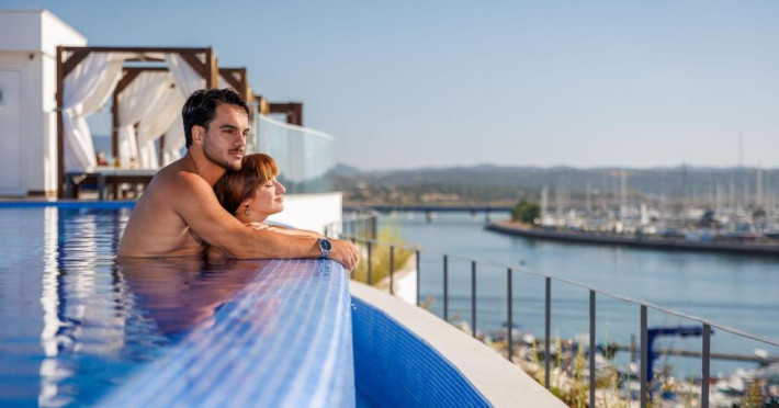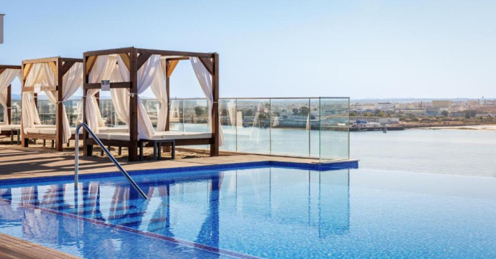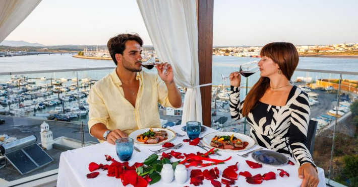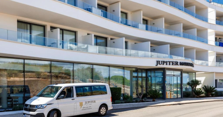 Jupiter Marina este un hotel de 4 stele, potrivit pentru cupluri, fiind situat la 100 de metri de malul raului Portimão și la mai puțin de 1 km de portul de agrement și plaja Praia da Rocha. Hotelul are o piscină infinită pe acoperiș, inconjurată de nisip și paturi balineze, cu vedere la raul Arade.