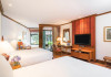 JW Marriott Phuket Resort & Spa, located in Mai Khao on the beach, offers direct access to Mai Khao Beach and is a short walk from Turtle Village and Sirinat National Park. The resort features 3 outdoor swimming pools, a private beach, and 5 restaurants, including Cucina (Italian). Additional amenities include a spa with massages, body treatments, and facials; a 24-hour fitness center; a games room; complimentary Wi-Fi and wired internet access; concierge services; a coffee shop/cafe; a beach bar; 3 bars/lounges; 3 poolside bars; 24-hour room service; a complimentary area shuttle (within 500 meters); limo/town car service; dry cleaning/laundry services; free self parking; and a 24-hour airport shuttle (surcharge applies). Buffet breakfast is available daily (fee applies). Event facilities include a conference center and 10 meeting rooms. The resort also has a turtle shelter. Rooms feature air-conditioning, refrigerators, minibars, 37-inch LCD TVs with satellite programming, private bathrooms with separate bathtubs and showers, phones, laptop-compatible safes, and desks. The JW MARRIOTT PHUKET RESORT AND SPA is a Beach Resort, Honeymoon, Leisure, Resort, Tourist hotel. The nightlife/restaurants are easily accessible by taxi or bus from the hotel.