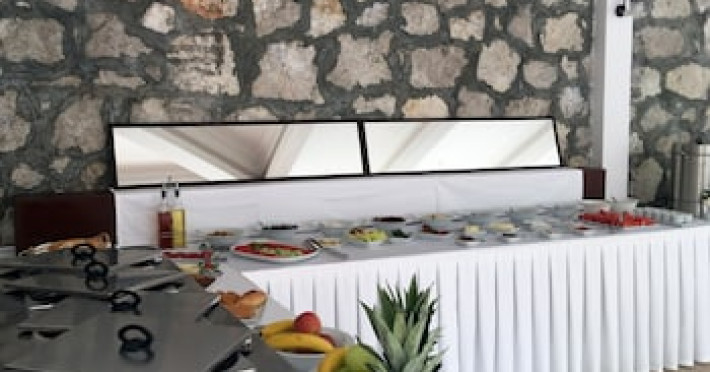 Un mic dejun tip bufet poate fi savurat la proprietate. Oaspeții pot lua o gustare la restaurantul proprietății, care servește preparate din bucătăria turcească și oferă, de asemenea, opțiuni vegetariene.