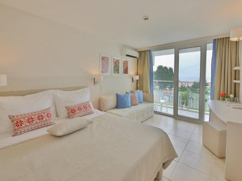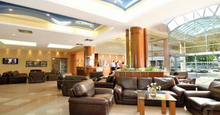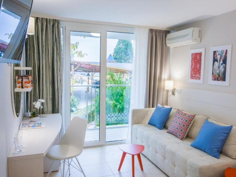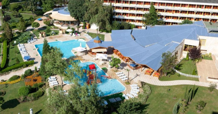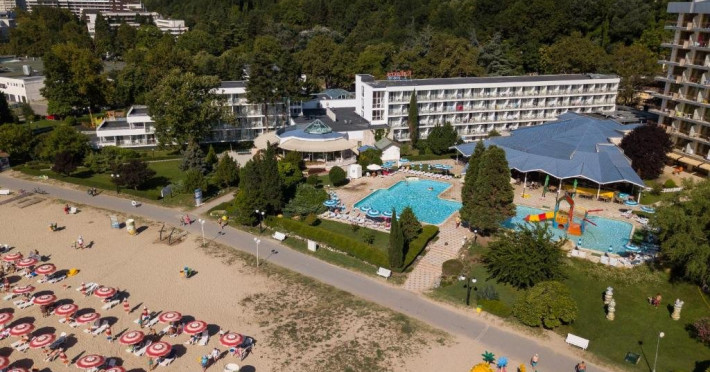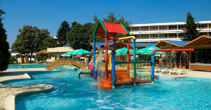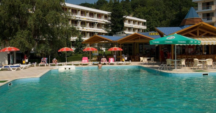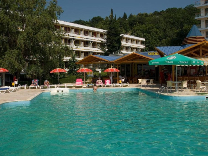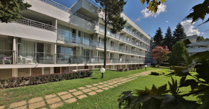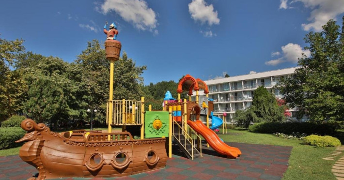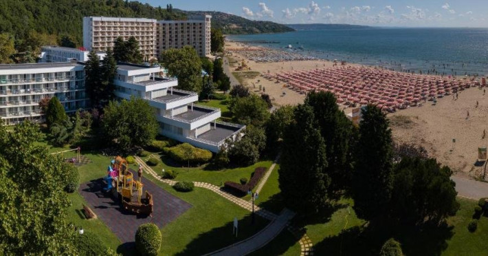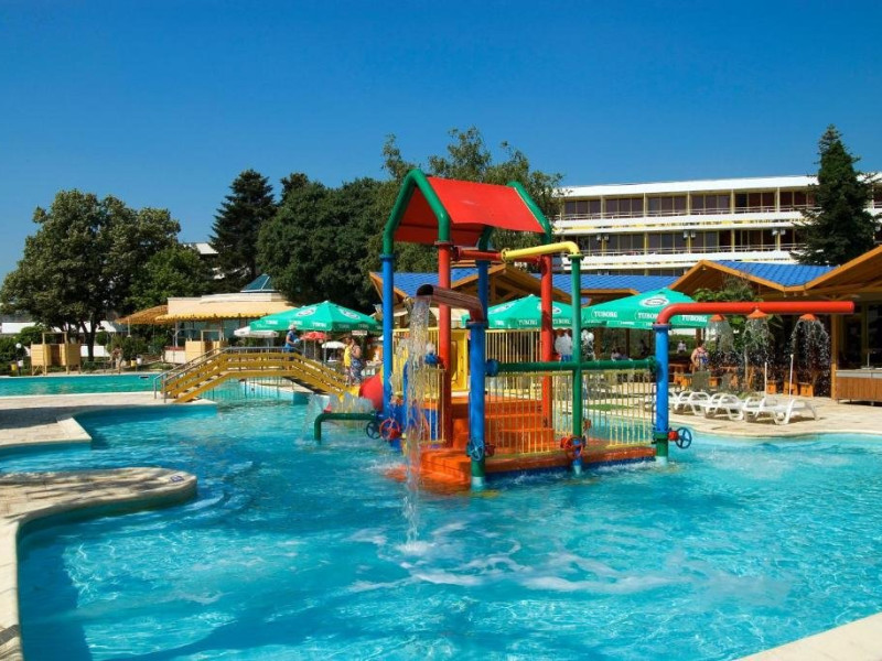 Localizare: Hotelul se afla aproape de plaja. Facilitati hotel: Hotelul pune la dispozitia clientilor piscina exterioara, piscina pentru copii, baruri, animatori, casa de schimb valutar, loc de joaca, parcare contra cost, restaurant, fitness in aer liber, spalatorie si calcatorie contra cost. Dotari camera: Camerel sunt dotate cu aer conditionat, TV, minibar, seif, balcon, baie cu cabina de dus.Site web: https://albena.bg/ro/kaliakra-mare