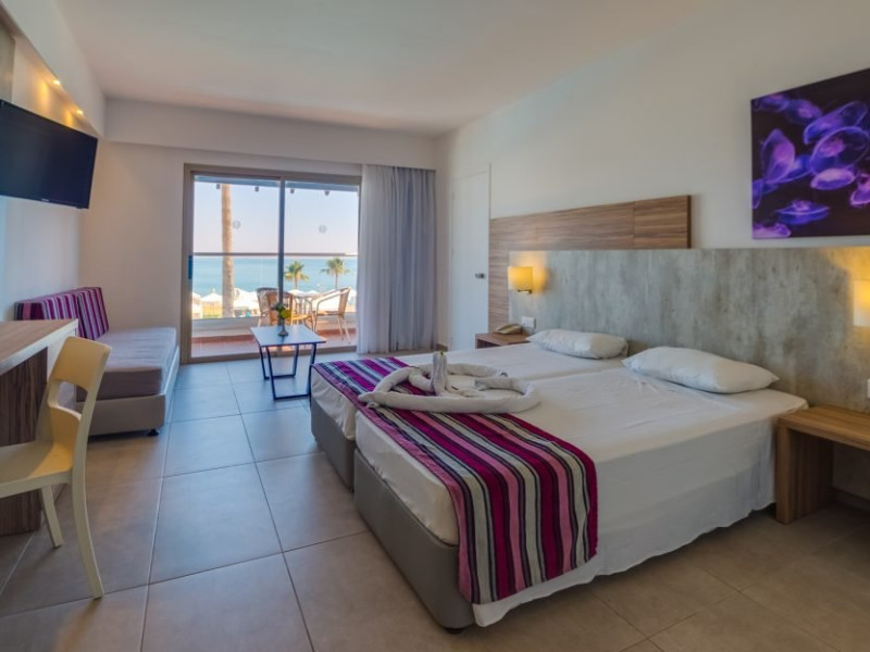 Locatie : Kapetanios Aqua Resort este un hotel de 4 stele situat intr-o locatie frumoasa langa zona golfului de corali, cu vedere la marea albastra limpede, care este la 10 metri. Dotari camera: Facilitatile camerei includ aer conditionat/incalzire controlata individual, telefon cu linie directa, TV prin satelit, minibar, uscator de par, seif si facilitati pentru ceai si cafea Facilitati hotel : Facilitatile hotelului includ hol, restaurant, un bar, un bar la piscina, trei piscine (una interioara), o piscina pentru copii, un loc de joaca pentru copii, un parc acvatic, teren de tenis,sauna, jacuzzi si o sala de gimnastica.