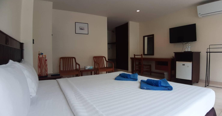 Located on Karon Beach in Phuket, this hotel offers a tranquil escape near the beach, Karon Temple, and Karon Market. The air-conditioned rooms feature cable TV, a refrigerator, and an en-suite bathroom with a shower and hairdryer. Complimentary Wi-Fi is available. Guests can enjoy on-site dining at the restaurant and arrange day trips through the tour desk, which also offers car and motorcycle rentals. Taxi service and airport transfers can be arranged. Additional amenities include free on-site parking, a terrace and garden, a communal living room, a 24-hour front desk, luggage storage, safety deposit boxes, complimentary toiletries, daily housekeeping, and breakfast. The Karon Living Room is a hotel.