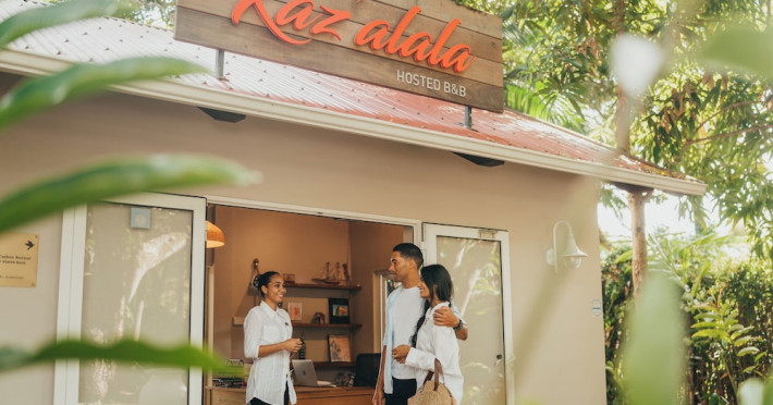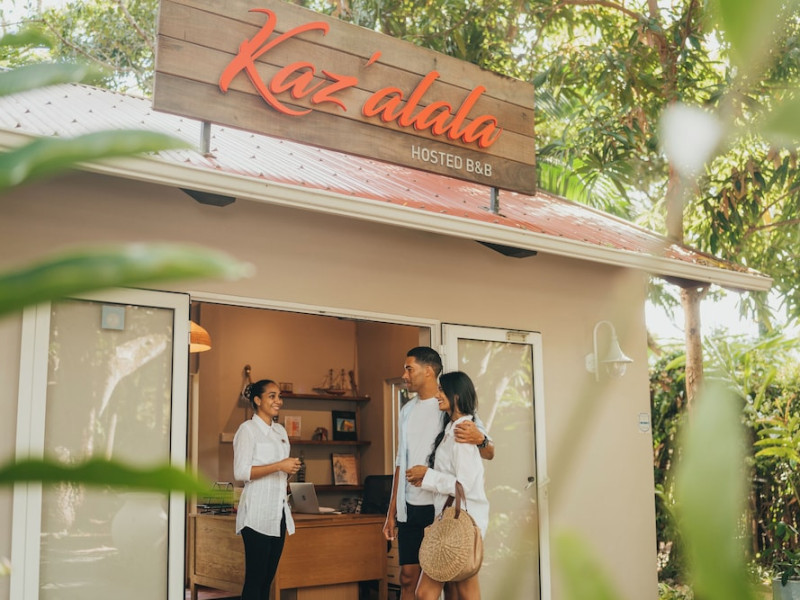 Located in a provincial park in Bel Ombre, Kaz'alala Hosted B&B offers proximity to Black River Gorges National Park. This guesthouse features an outdoor pool, complimentary wireless internet access, a television in a common area, and barbecue grills. Guests can enjoy local and international cuisine at Lakaz Mama restaurant, which includes a bar/lounge, or utilize room service during limited hours. A complimentary buffet breakfast is served daily from 7:00 AM to 10:00 AM. The property offers dry cleaning/laundry services, multilingual staff, and luggage storage. A roundtrip airport shuttle is available for a surcharge (24 hours), and free self parking is provided onsite. Guests can prepare meals in the shared/communal kitchen. The individually decorated guestrooms include complimentary wireless internet access and bathrooms with showers and hair dryers. Bicycles are available to rent. The Kaz alala is a hotel.