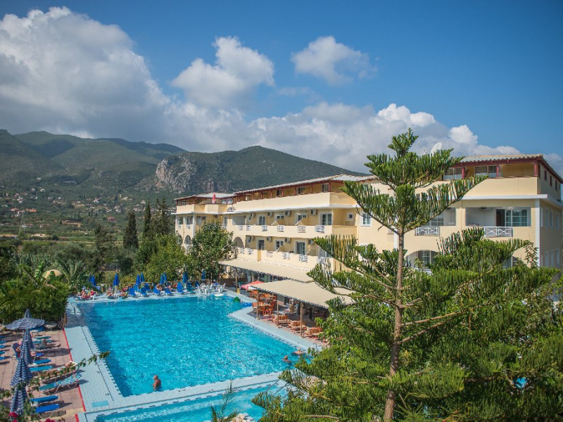 Facilitati hotel: Receptie 24 de ore, hol, lounge, schimb valutar, siguranta centrala cutie de depozit (gratuit), camera pentru bagaje, lifturi, zona TV prin satelit, zona de biblioteca, Wi-Fi in zonele publice (gratuit), 3 piscine exterioare, piscina sezlonguri si umbrele (gratuit), gradina, parcare la fata locului (gratuit), transfer privat service (la cerere cu cost suplimentar), tururi VIP (contra cost), transfer catre si dinspre orasul Zante (contra cost), medic de garda (contra cost).
