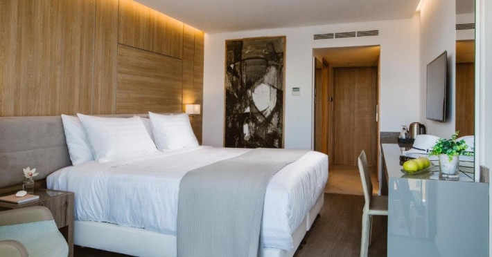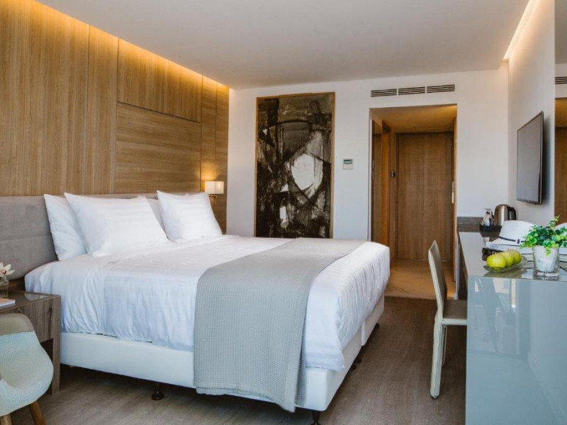 Descriere: Pozitionat practic pe malul apei unui golf unic din Larnaca, pe coasta Ciprului, Hotelul Lebay Beach se afla la doar 10 minute de mers cu masina de centrul orasului si de restaurantele, barurile sale populare si de un centru comercial plin de viata. Transferurile de la aeroport sunt fara efort, deoarece hotelul se afla la doar 15 minute de mers cu masina de Aeroportul International Larnaca. Aceasta evadare contemporana ii atrage pe calatorii de astazi care apreciaza luxul in design minimalist. Arhitectura moderna a hotelului de tip boutique, este flancata de o plaja de nisip lunga, in care apele curate si calme sunt atinse de o briza proaspata.