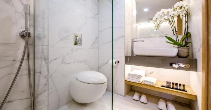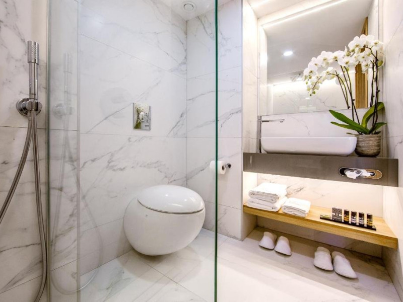 Dotari camere: Terasa privata cu vedere la munte, aer conditionat/incalzire controlat individual, WiFi de mare vitez gratuit, Smart TV interactiv, seif electronic in camera gratuit, Deeming Secret Lighting, baie privata completa din marmura, elemente esentiale pentru baie.
