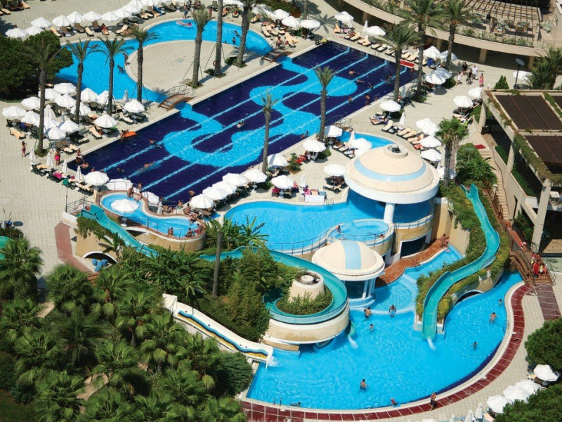 Facilitati hotel :Hotelul ofera oaspetilor sai urmatoarele facilitati: restaurant principal, 5 restaurante a la carte, baruri, bar pe plaja, discoteca, sali de conferinta, amfiteatru, centru fitness, sauna, baie turceasca, aquapark cu 4 tobogane, piscine exterioare, piscina interioara, jacuzzi, internet wi-fi, teren de tenis, spectacole si programe de animatie. Servicii cu plata: bauturile imbuteliate, inghetata ambalata, fresh-uri din fructe, restaurantele a la carte, sporturi acvatice, biliard, bowling, internet cafe, sala de jocuri, masaj si alte terapii in centrul SPA, echipament pentru tenis, room service, servicii medicale.